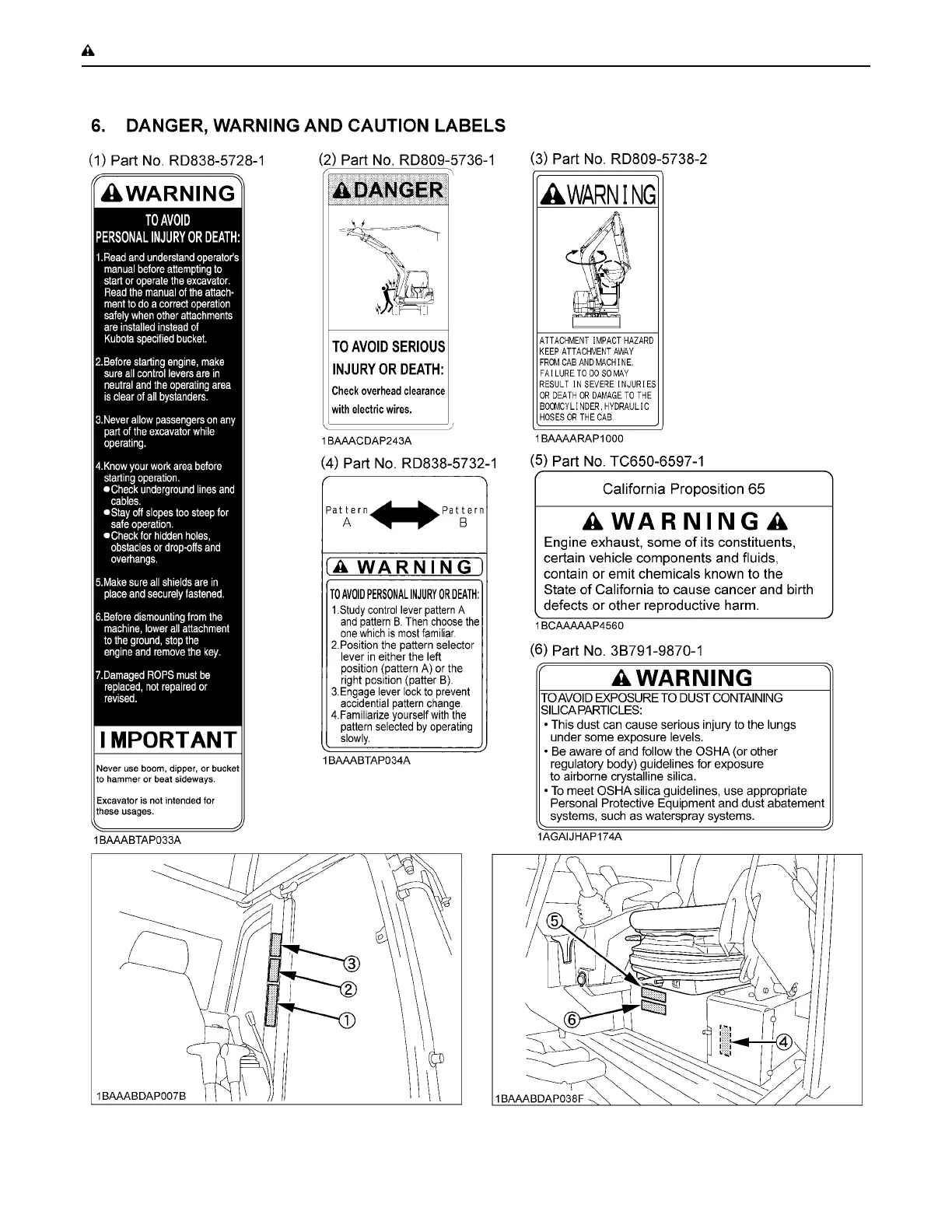 Kubota KX080-4S2 - DANGER, WARNING AND CAUTION LABELS