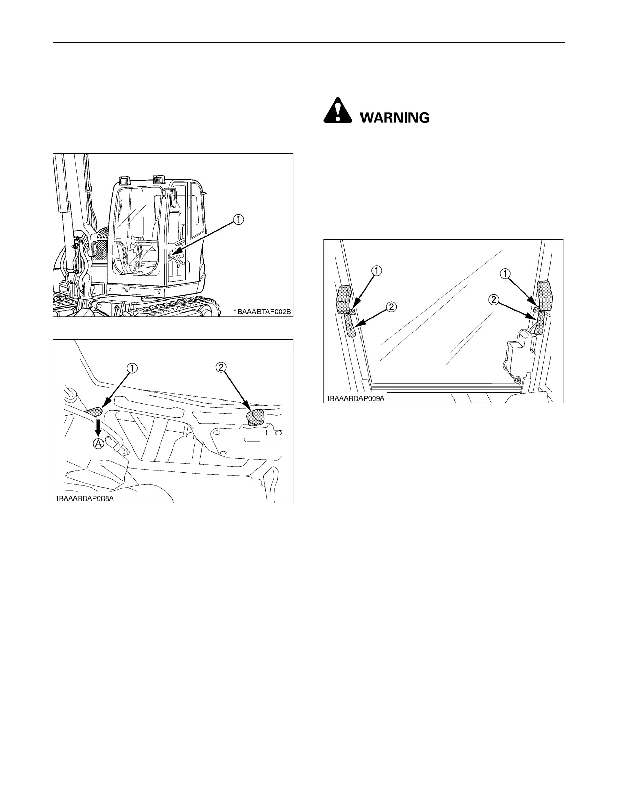1. Unlock the CAB door and pull the knob. Open the CAB