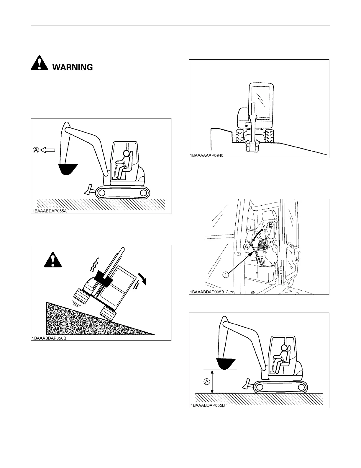 and hold the bucket about 20 to 40 cm (8 to 16 in.)