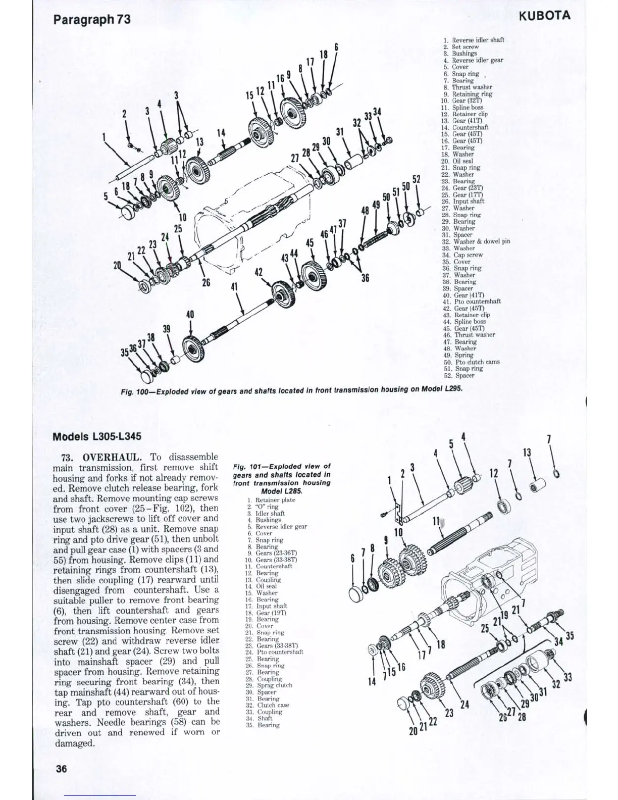 Fig. 100—Explod9d Wew of gears and shafts located in front transmission housing on Model L29S.