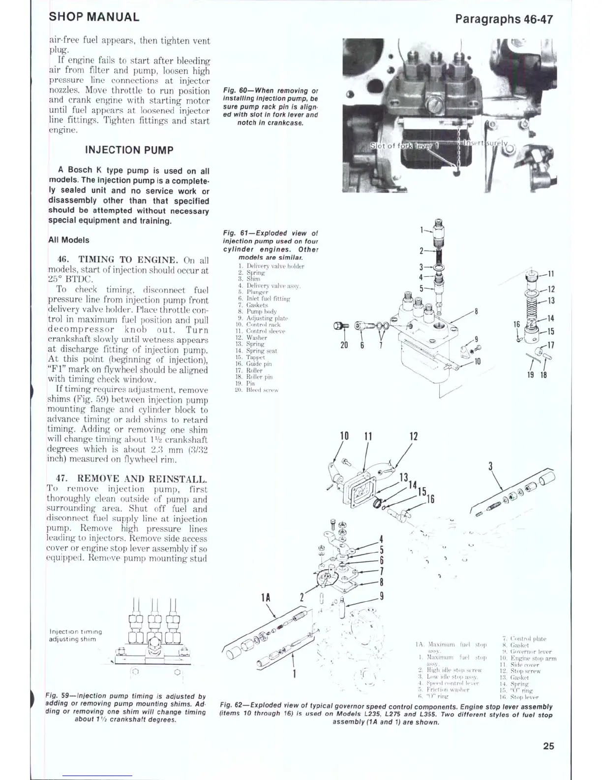 shims (Fig. 59) between injection pump