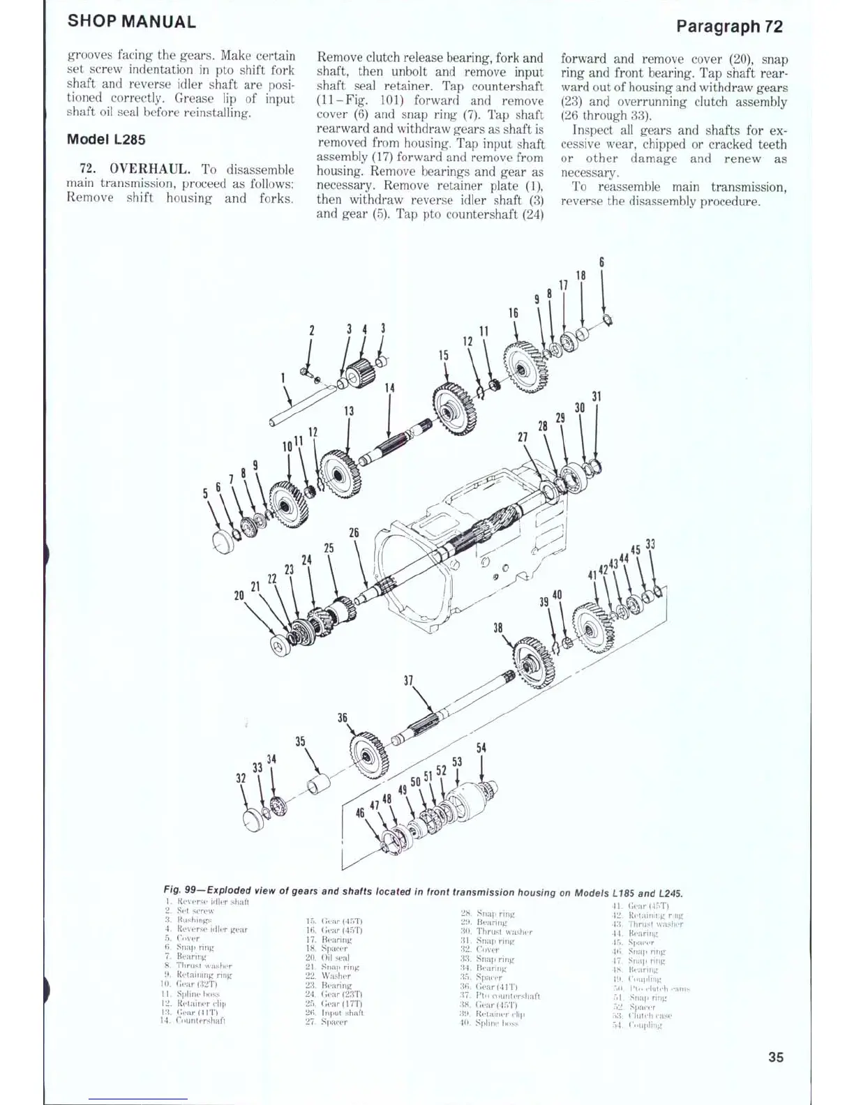 gears and shafts iocated in front transmission housing on i^odeis LI85 and L245.
