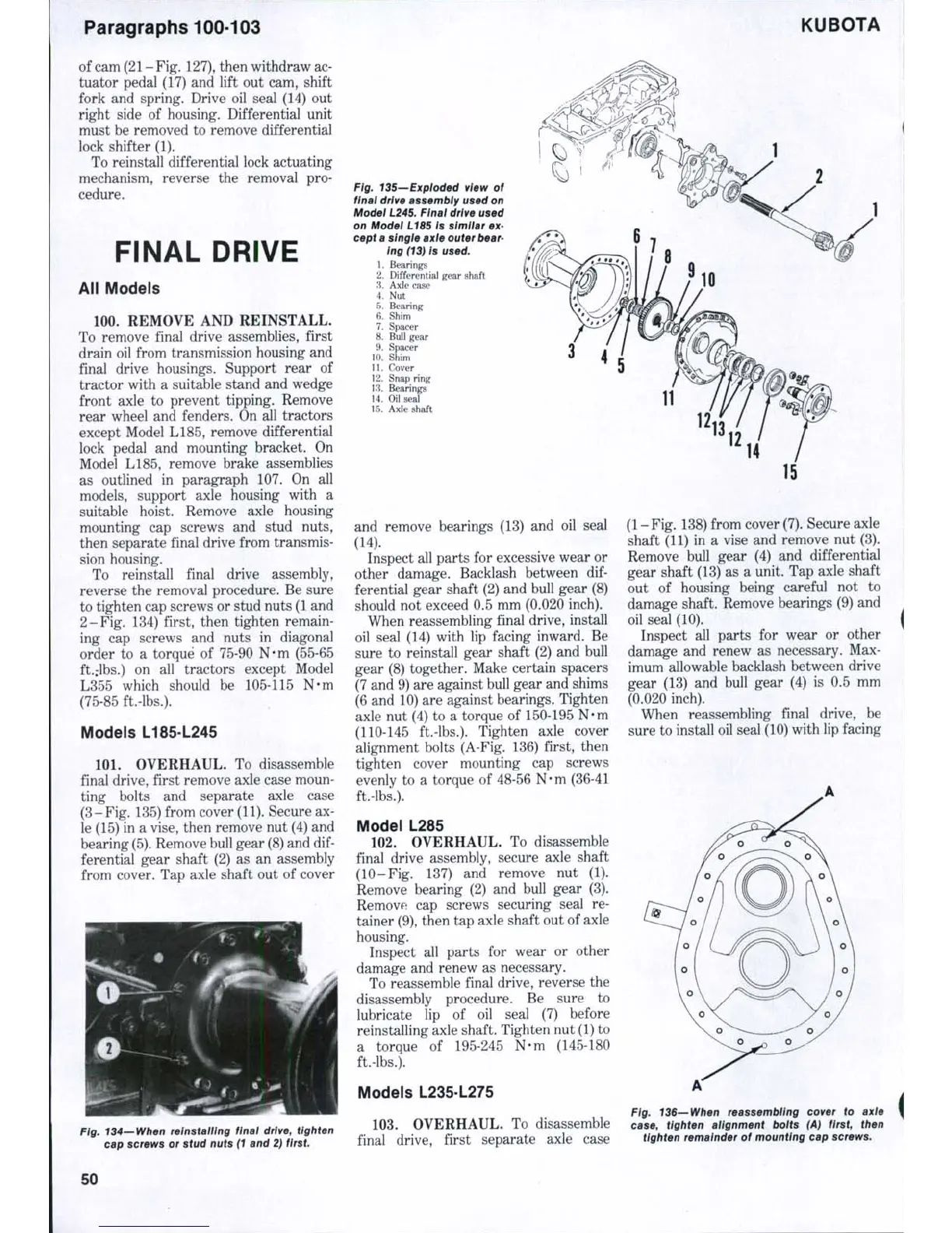 Fig. 134—When reinstatUng final drive, tighten