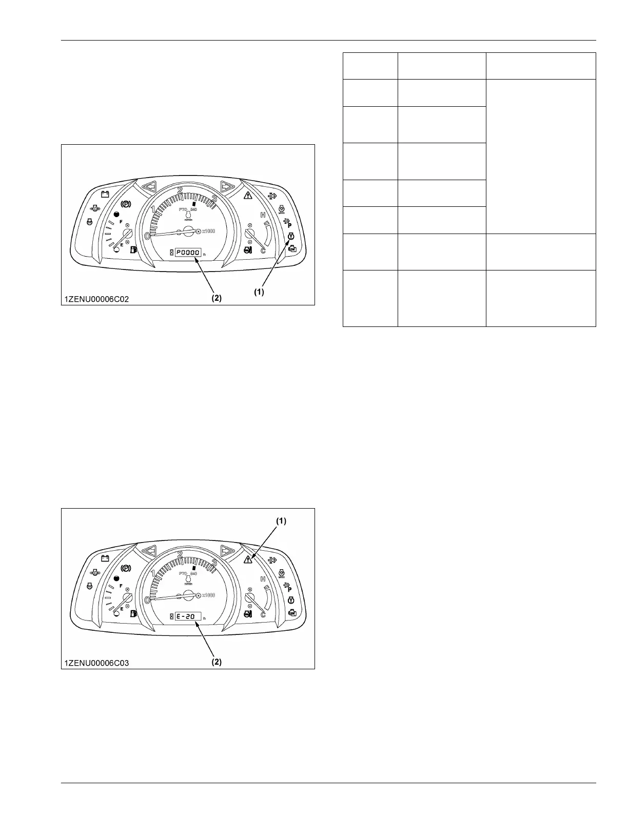 (1) Engine warning indicator (2) Error code