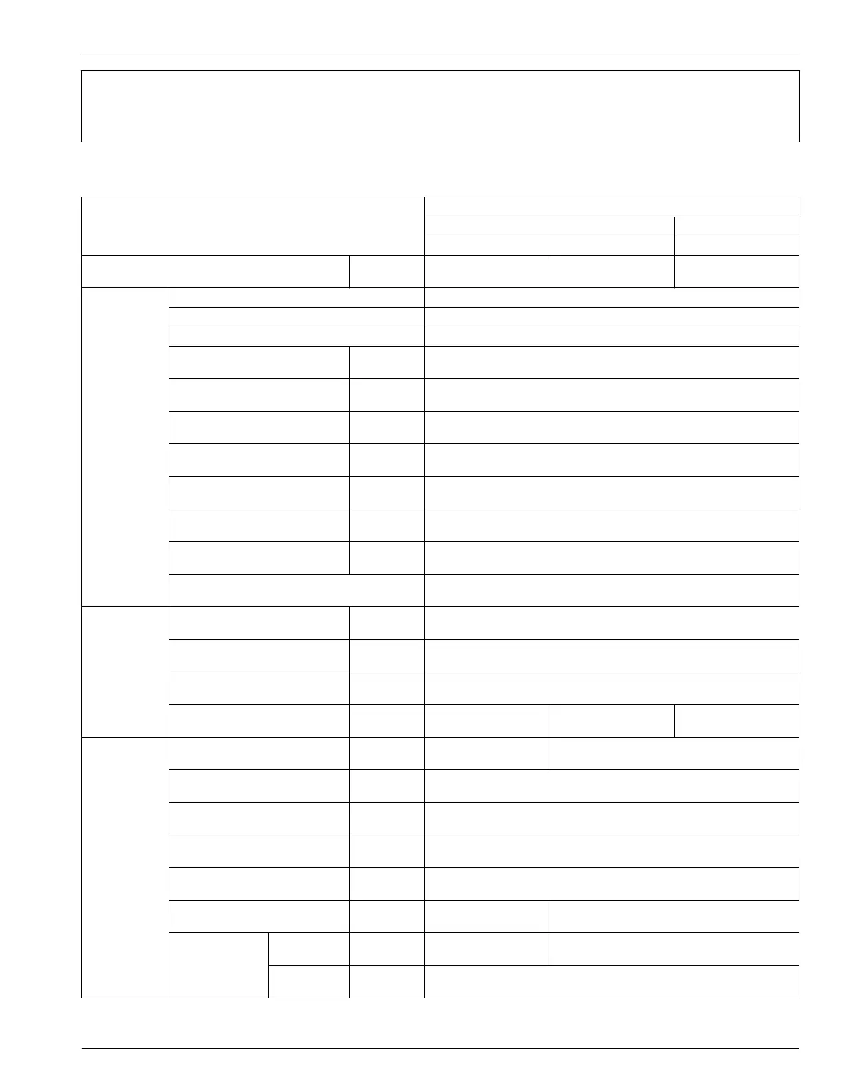 SPECIFICATION TABLE