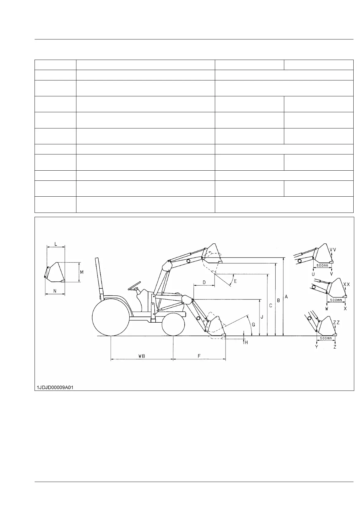 DIMENSIONAL SPECIFICATIONS OF THE LOADER