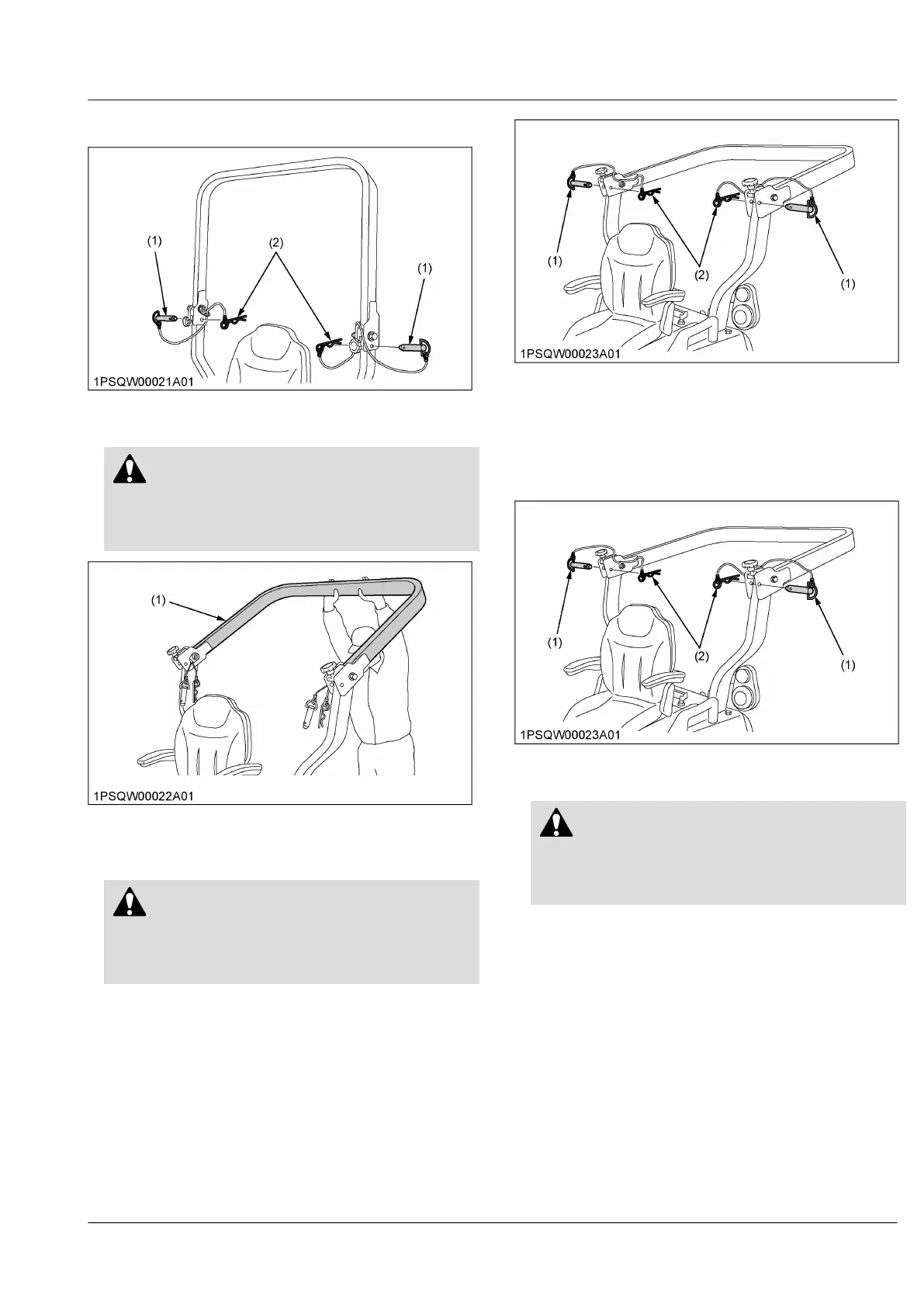 • Hold the ROPS tightly with both hands and