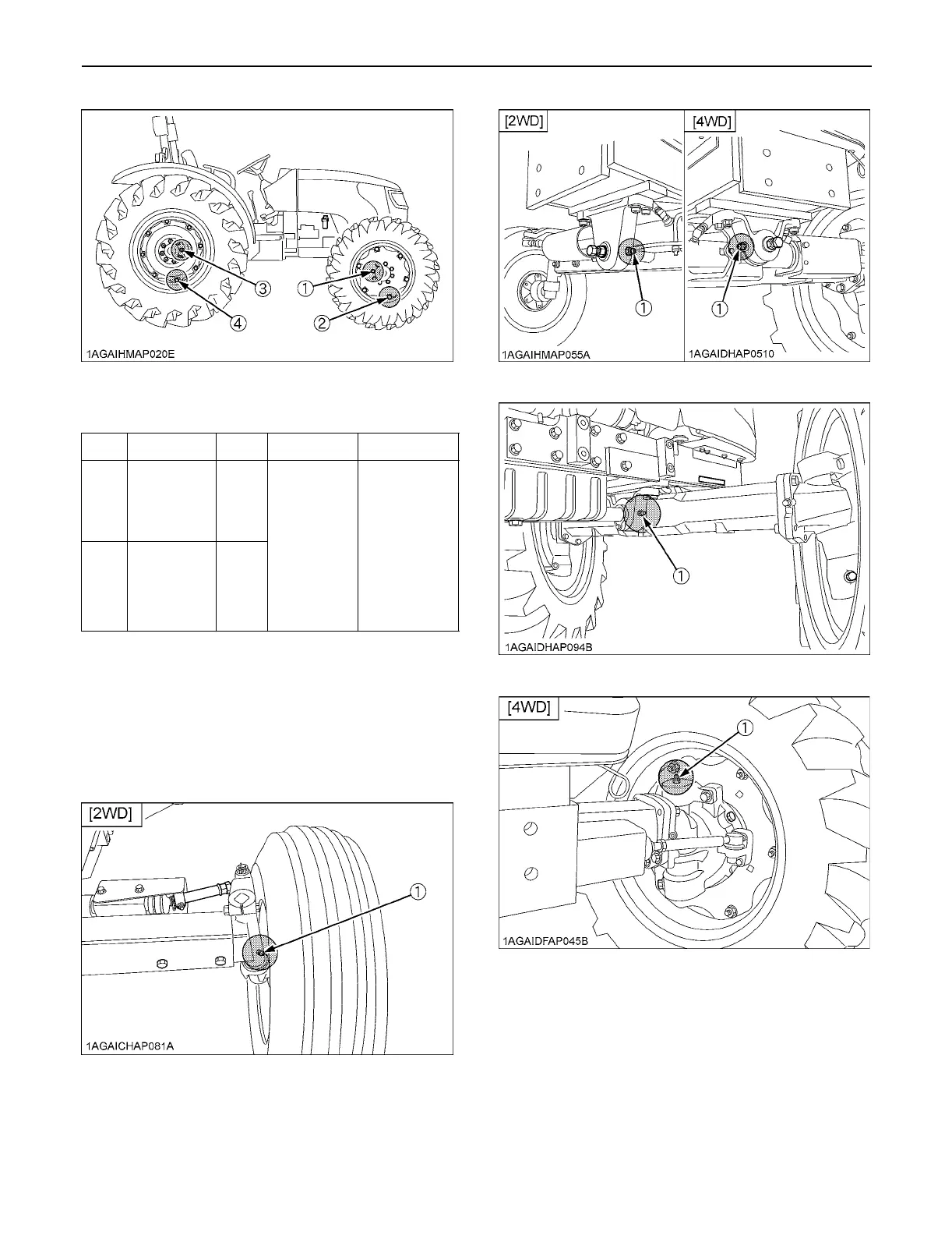 (1) Grease fitting (Front axle gear case support) [RH, LH]