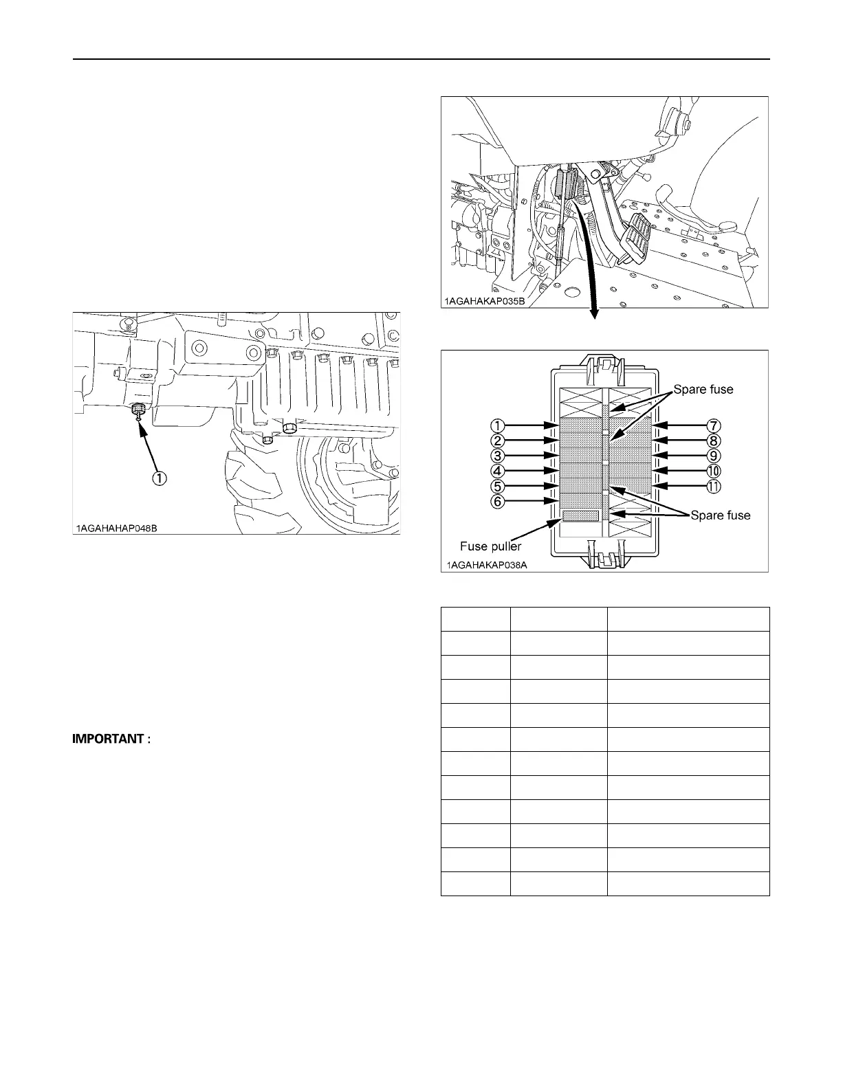 FUSE No. CAPACITY(A) Protected circuit