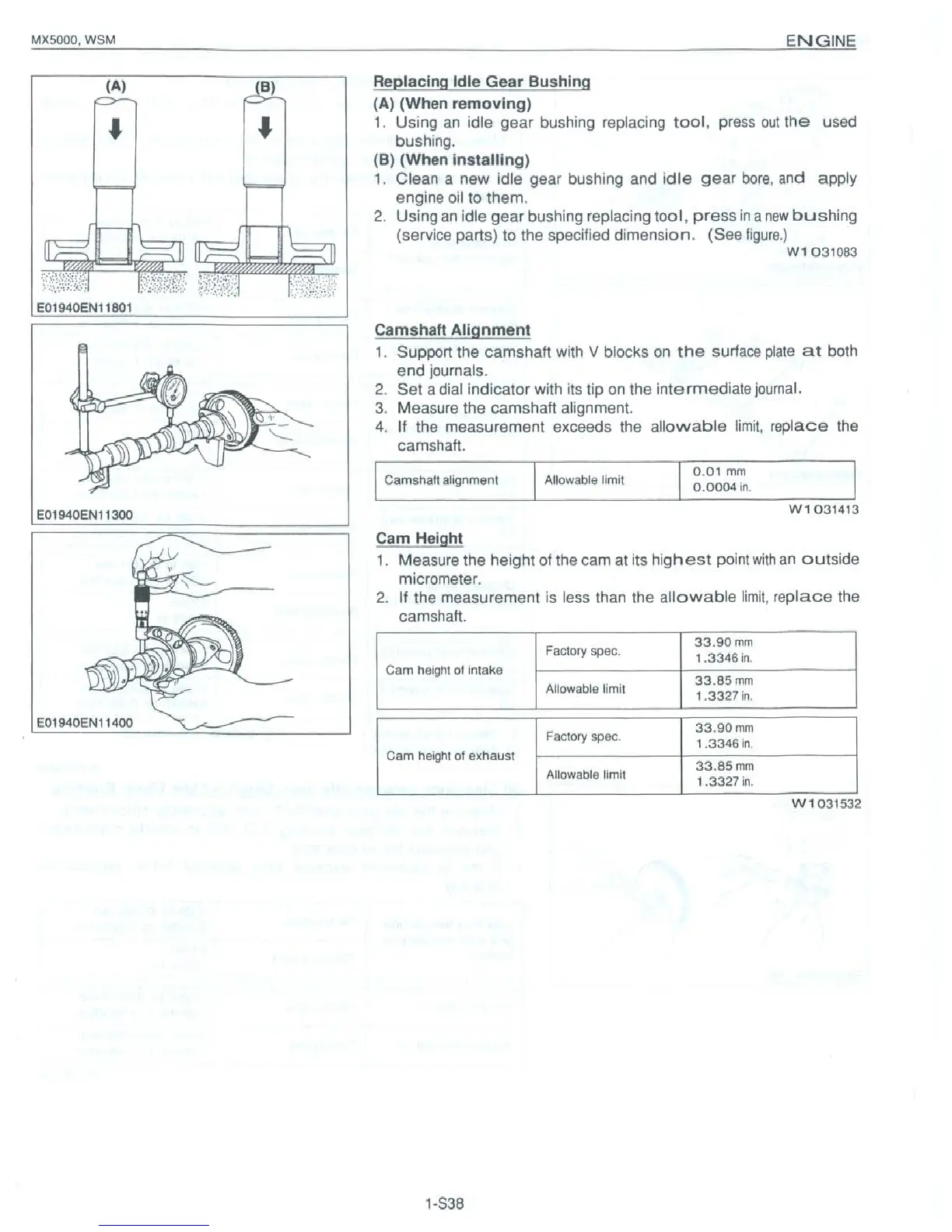 Kubota MX5000 - Replacing Idle Gear Bushing; Camshaft Alignment; Cam Height