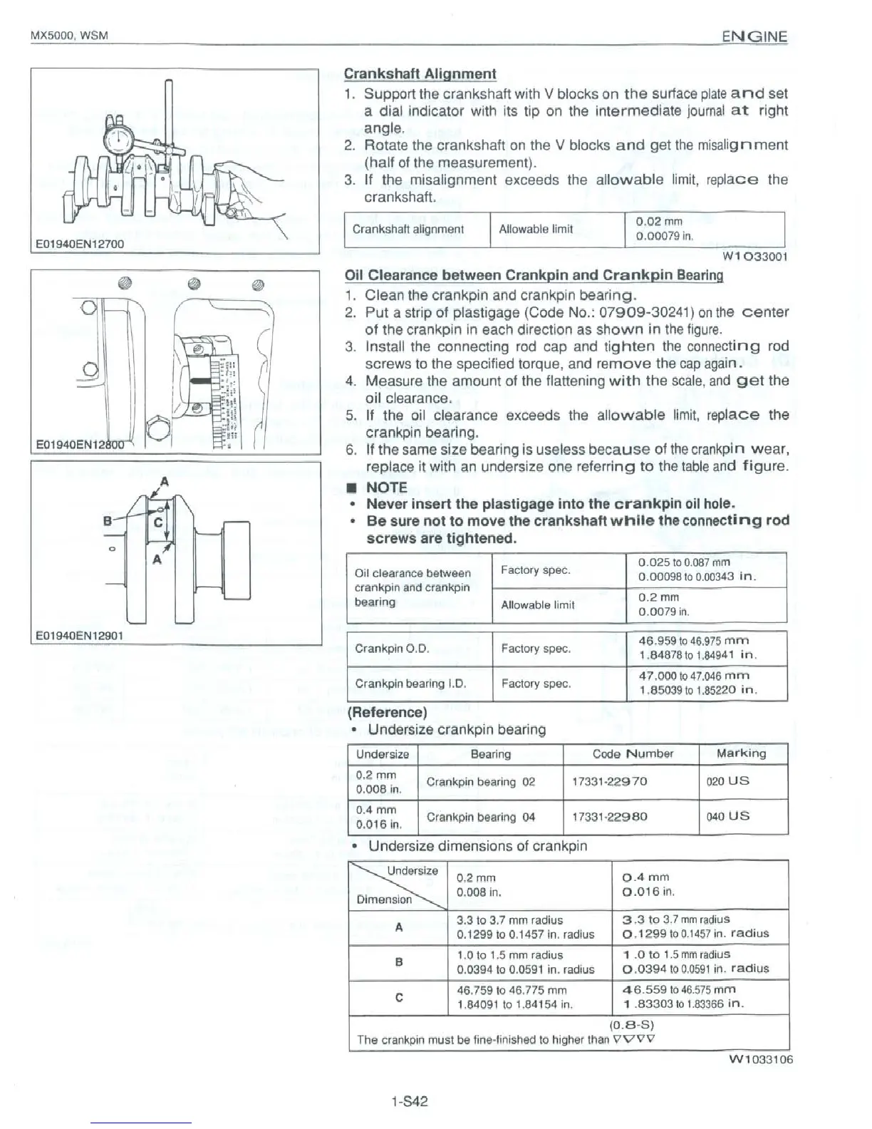 Kubota MX5000 - Crankshaft Alignment; Oil Clearance between Crankpin and Crankpin Bearing