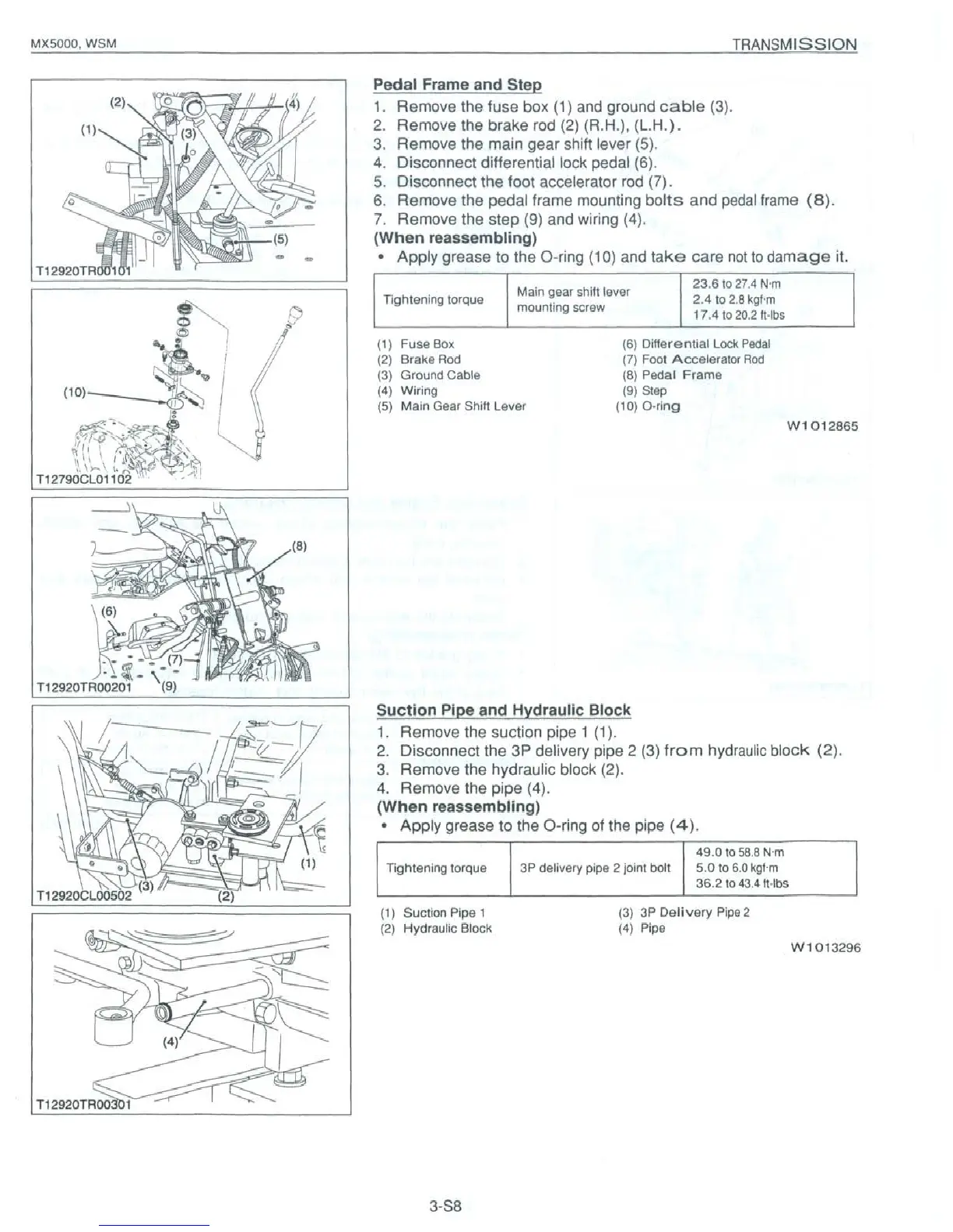 Kubota MX5000 - Pedal Frame and Step; Suction Pipe and Hydraulic Block