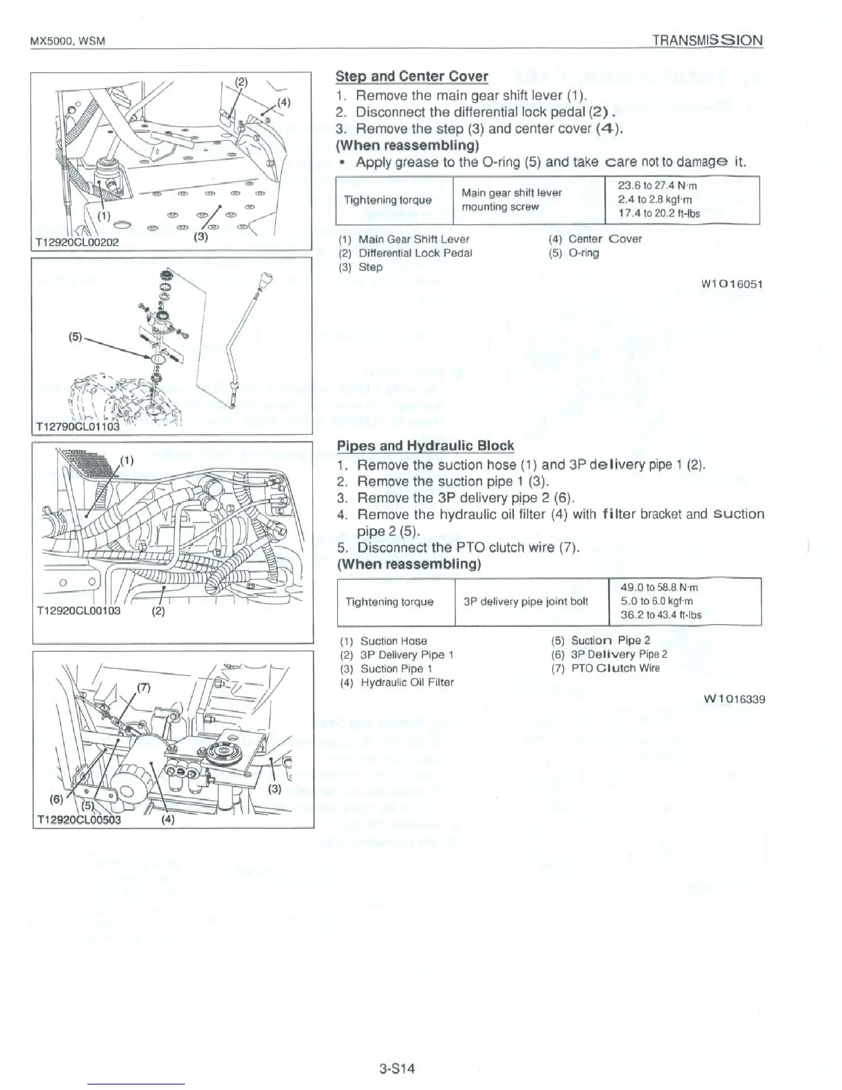 Kubota MX5000 - Step and Center Cover; Pipes and Hydraulic Block