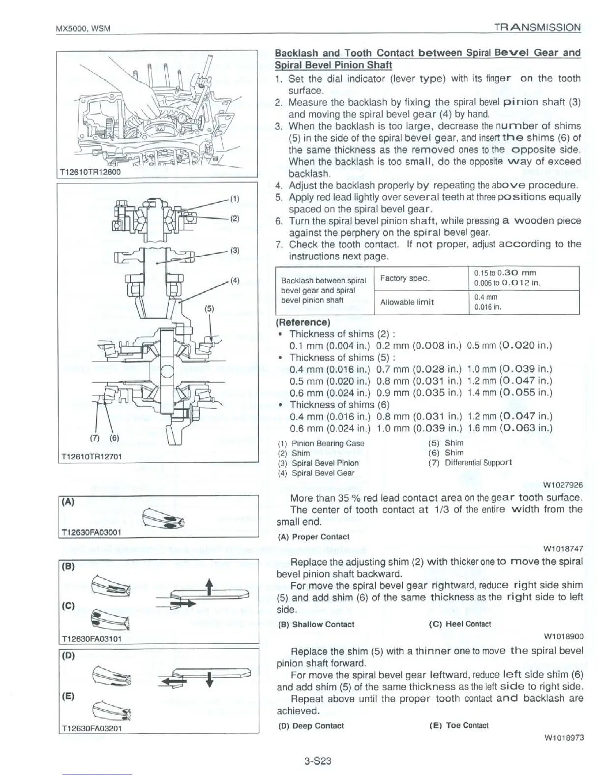 Kubota MX5000 - Backlash and Tooth Contact between Spiral Bevel Gear Ans Spiral Bevel Pinion Shaft