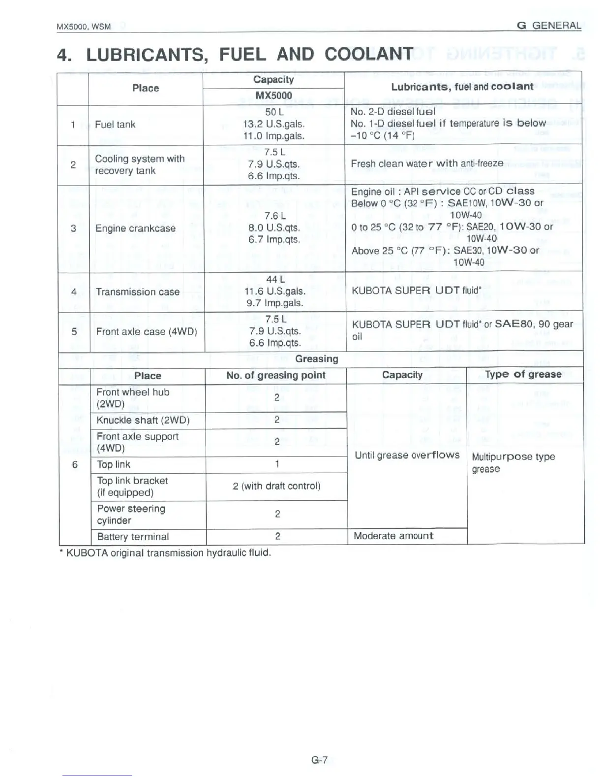 Kubota MX5000 - Lubricants, Fuel and Coolant