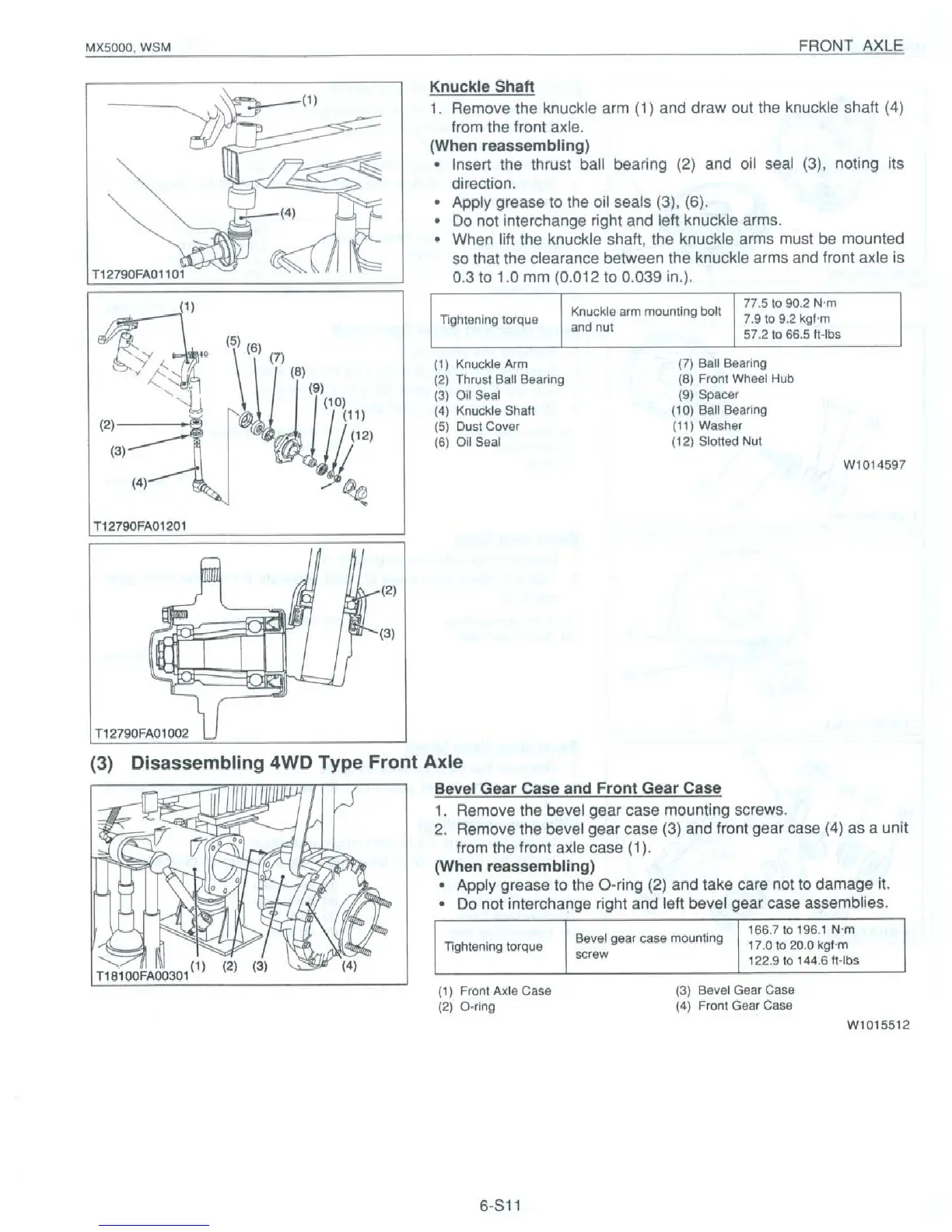 Kubota MX5000 - Knuckle Shaft; Disassembling 4 WD Type Front Axle; Bevel Gear Case and Front Gear Case