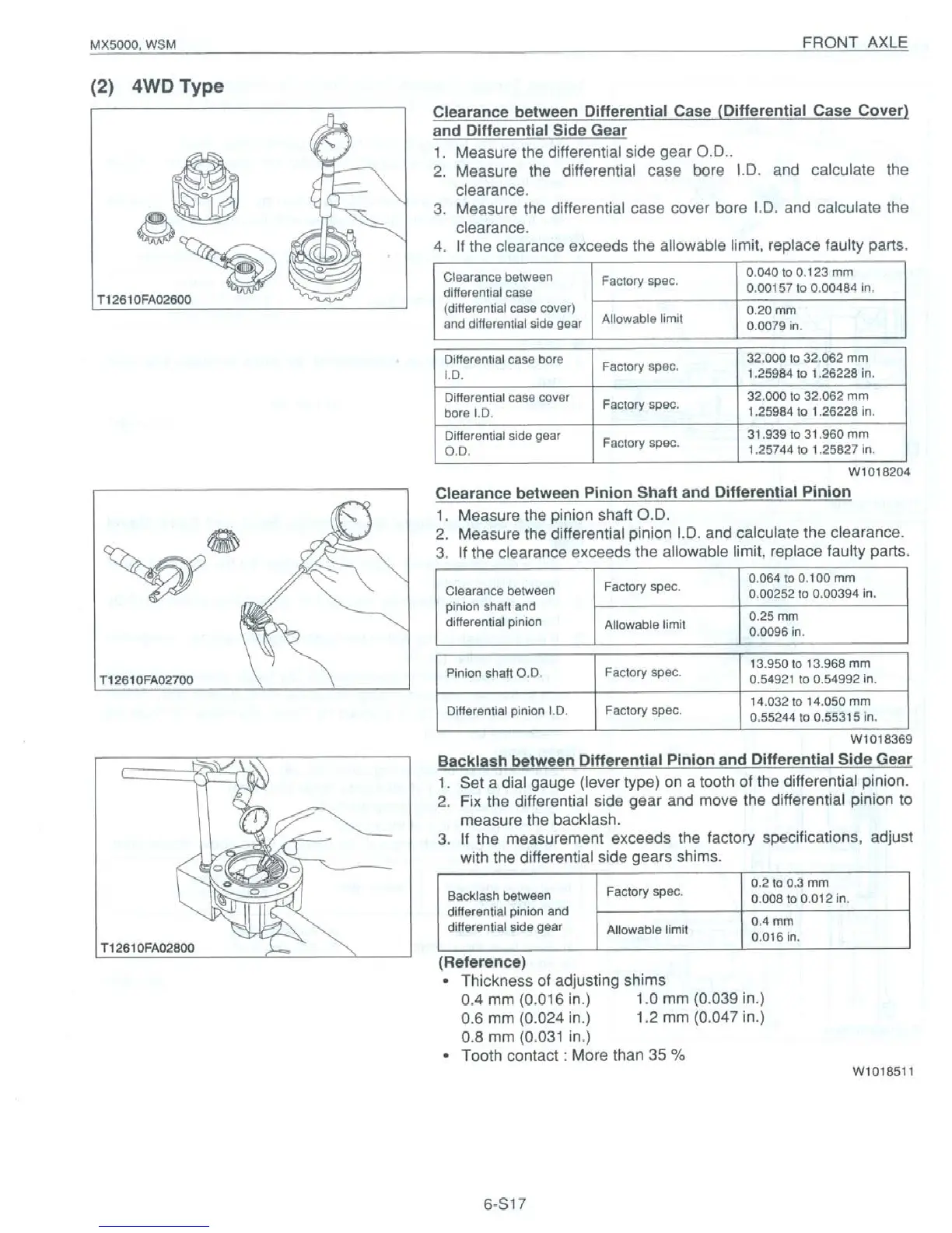 Kubota MX5000 - Clearance between Differential Case (Differential Case Cover) and Differential Side Gear; Clearance between Pinion Shaft and Differential Pinion
