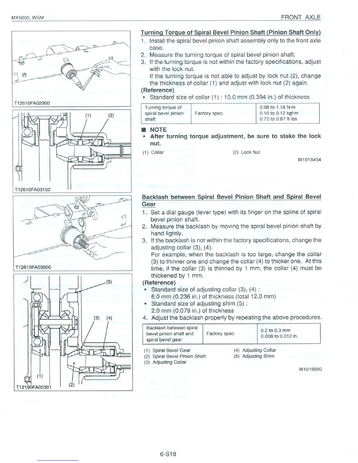 Kubota MX5000 - Turning Torque of Spiral Bevel Pinion Shaft (Pinion Shaft Only); Backlash between Spiral Bevel Pinion Shaft and Spiral Bevel Gear