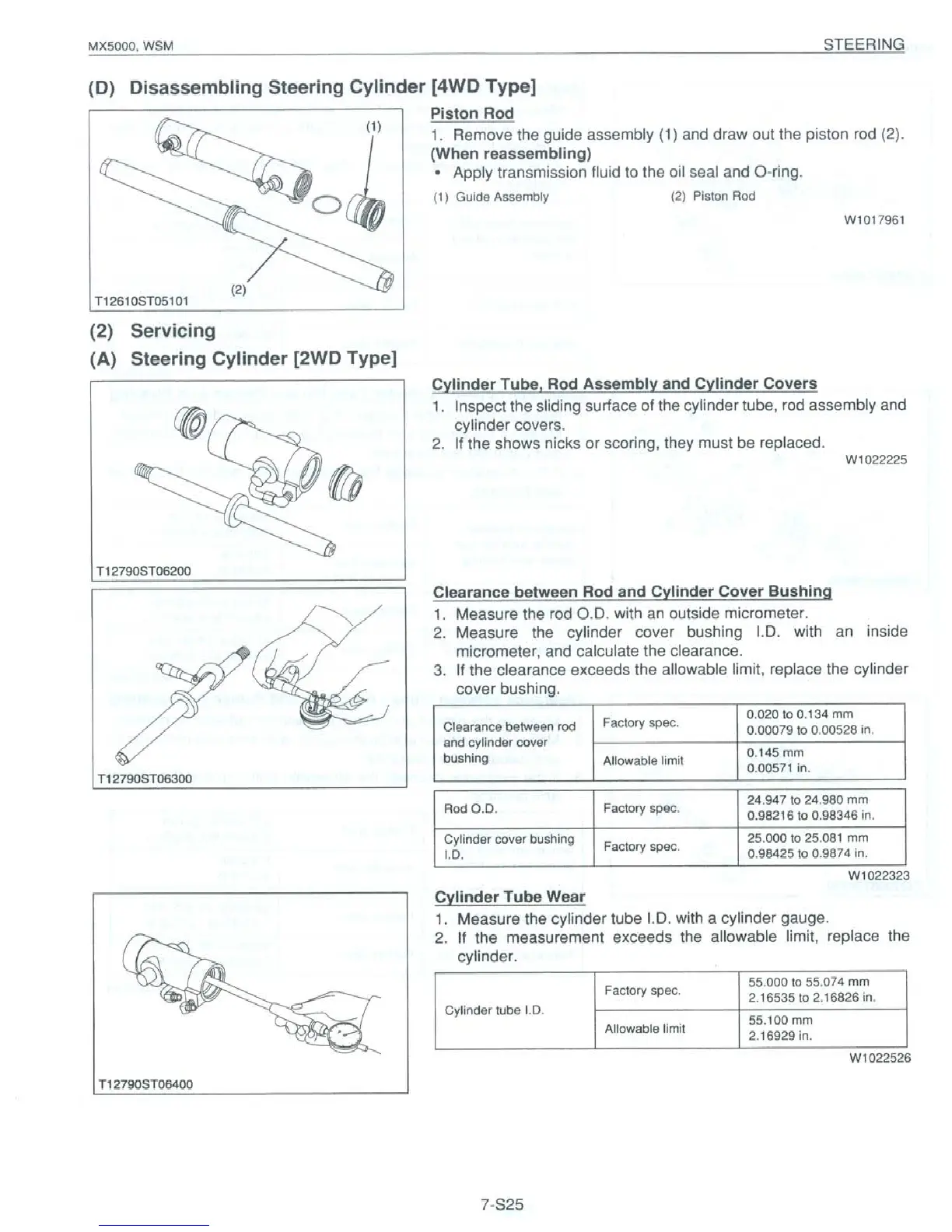 Kubota MX5000 - Disassembling Steering Cylinder [4 WD Type]; Piston Rod; Clearance between Rod and Cylinder Cover Bushing; Cylinder Tube Wear
