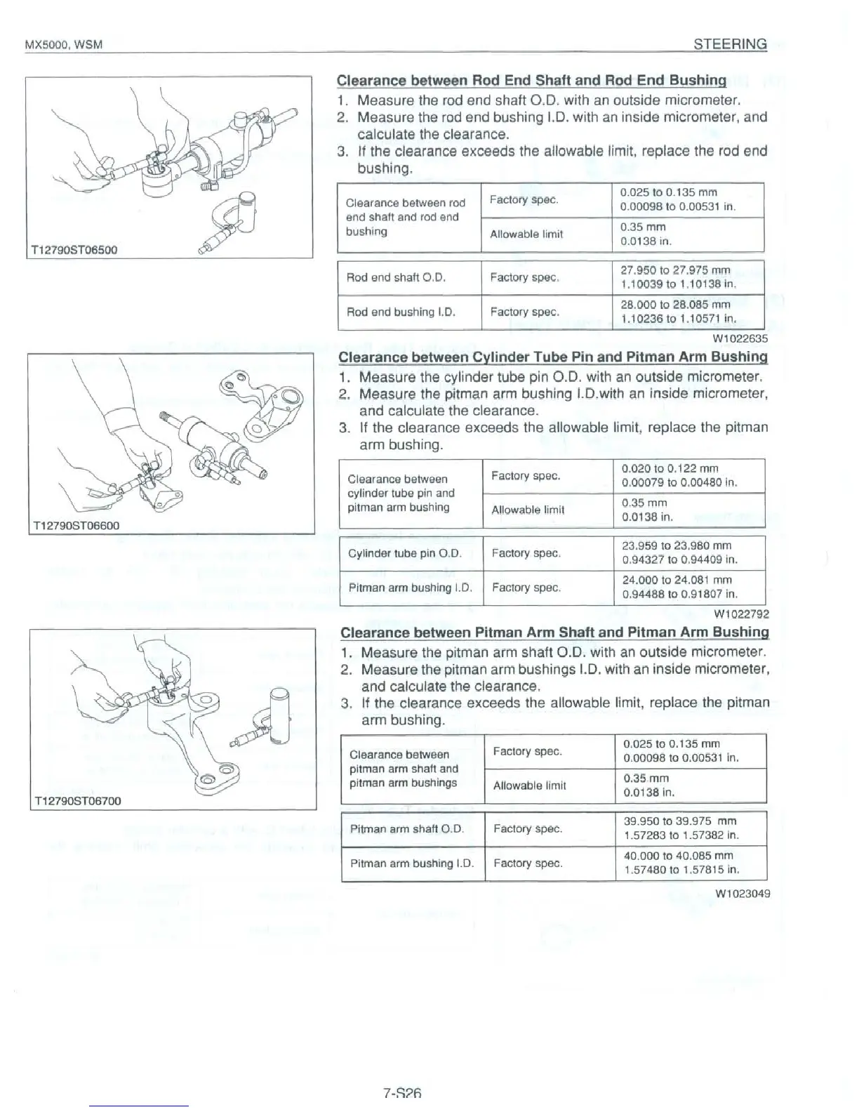Kubota MX5000 - Clearance between Rod End Shaft and Rod End Bushing; Clearance between Cylinder Tube Pin and Pitman Arm Bushing; Clearance between Pitman Arm Shaft and Pitman Arm Bushing