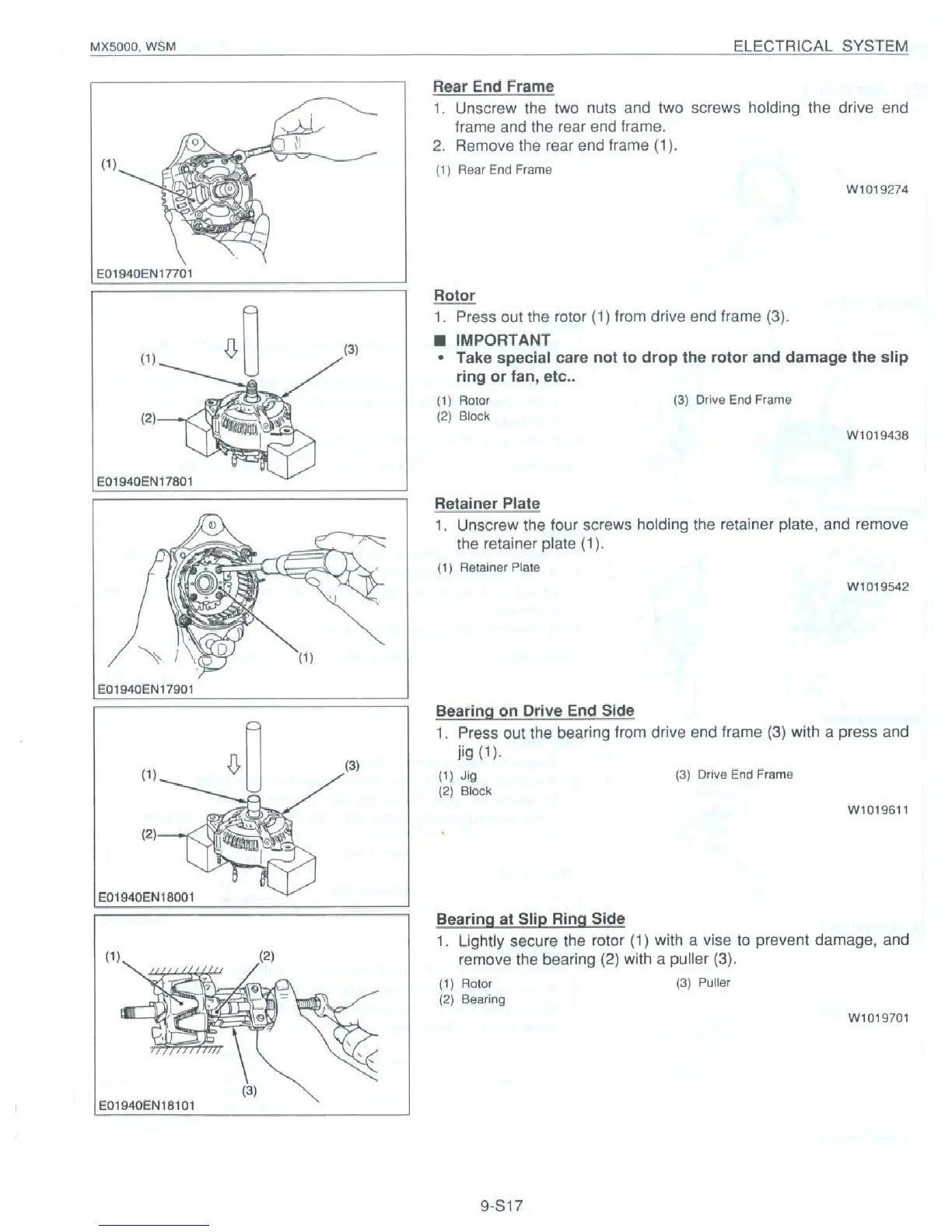 Kubota MX5000 - Rear End Frame; Rotor; Retainer Plate; Bearing on Drive End Side