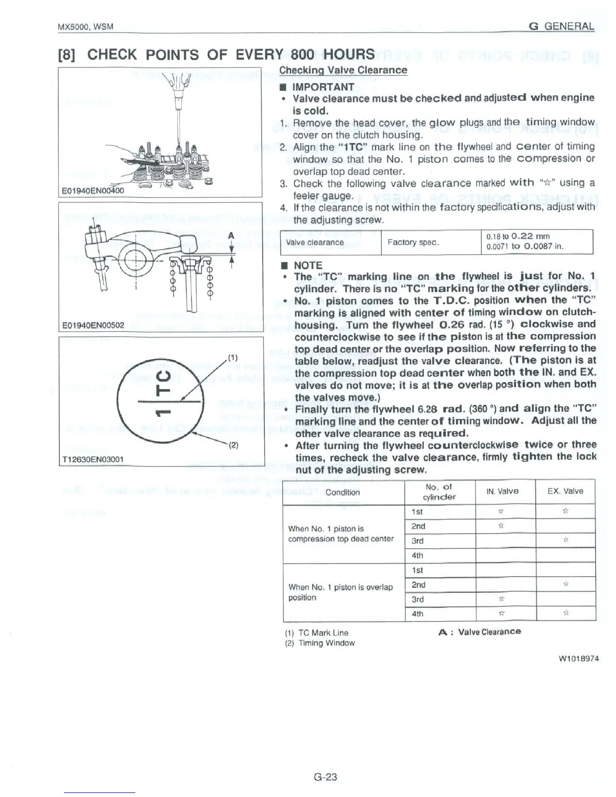 Kubota MX5000 - Check Points of Every 800 Hours; Checking Valve Clearance