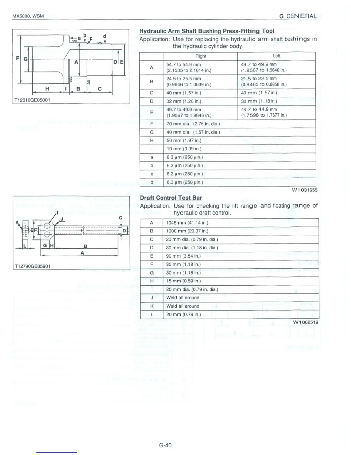 Kubota MX5000 - Hydraulic Arm Shaft Bushing Press-Filling Tool; Draft Control Test Bar