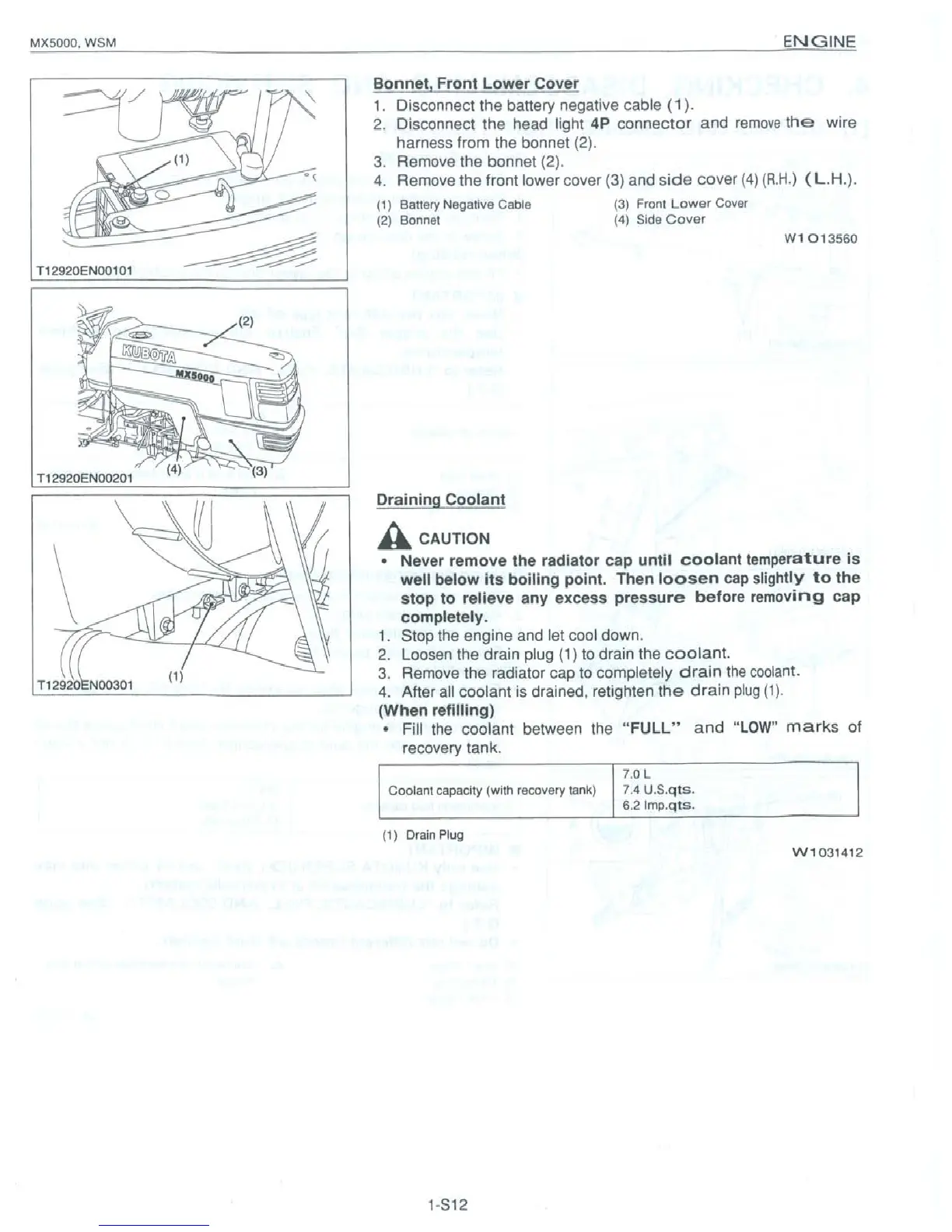 Kubota MX5000 - Bonnet, Front Lower Cover; Draining Coolant