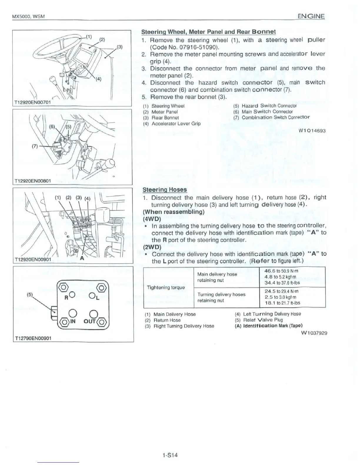 Kubota MX5000 - Steering Wheel, Meter Panel and Rear Bonnet; Steering Hoses