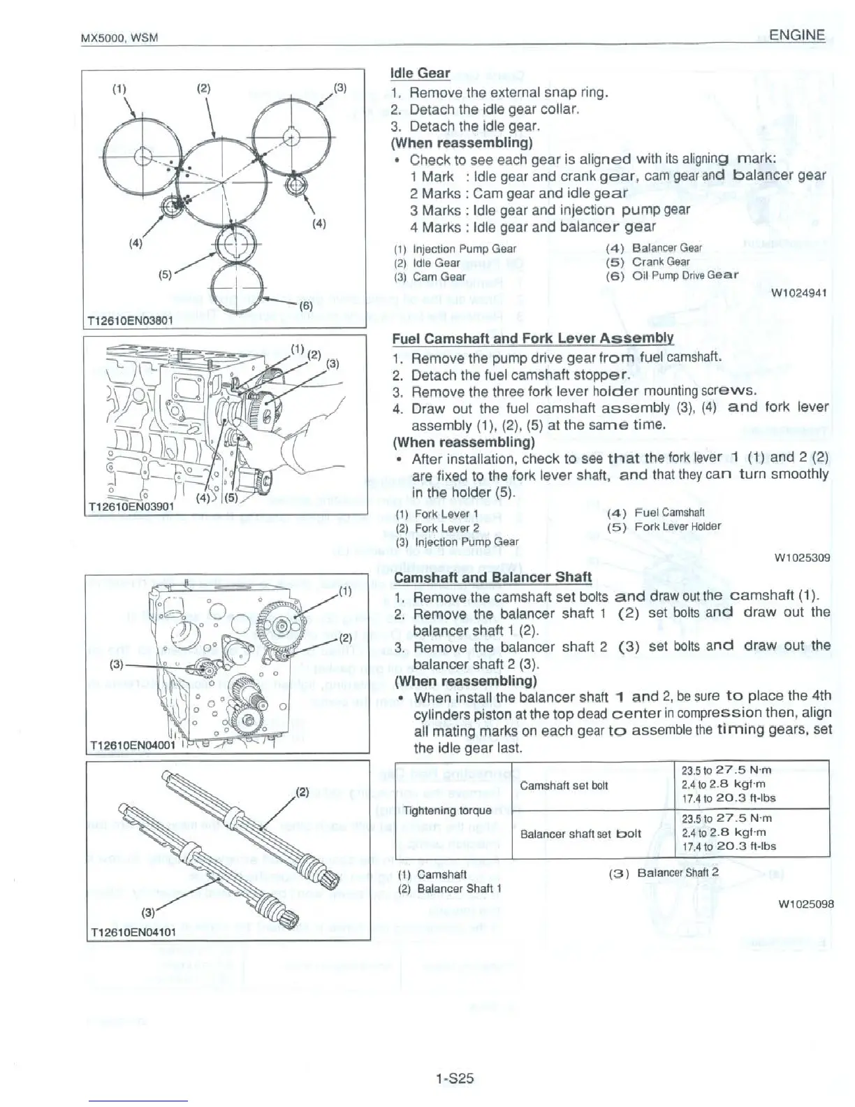 Kubota MX5000 - Idle Gear; Fuel Camshaft and Fork Level Assembly; Camshaft and Balancer Shaft
