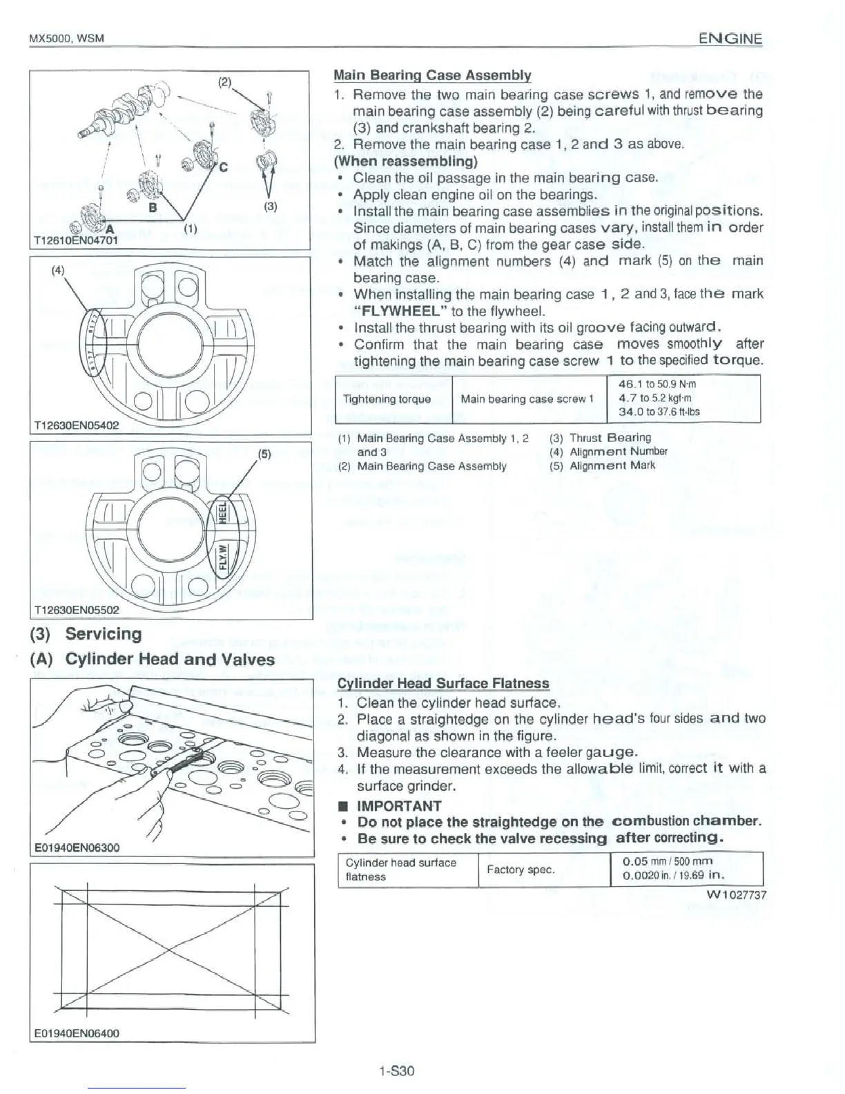 Kubota MX5000 - Main Bearing Case Assembly; Cylinder Heat Surface Flatness