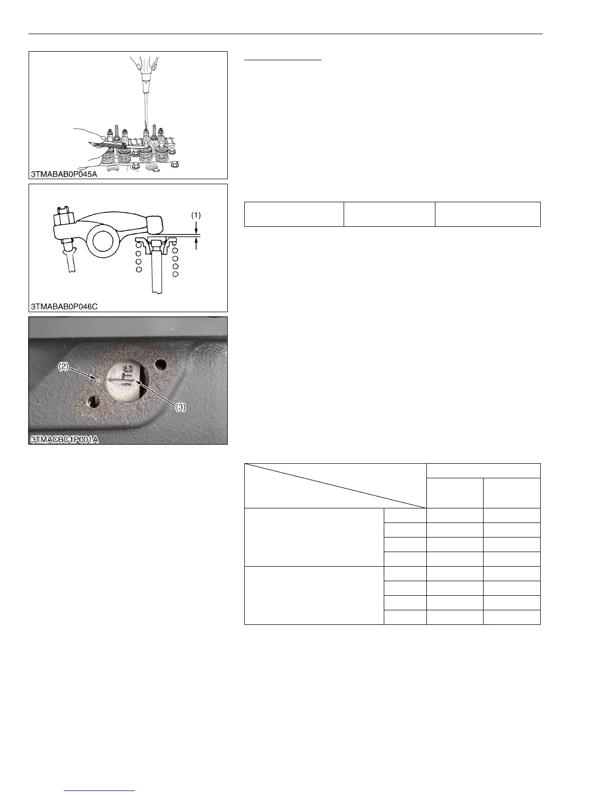 referring to the table below, readjust the valve clearance (1).