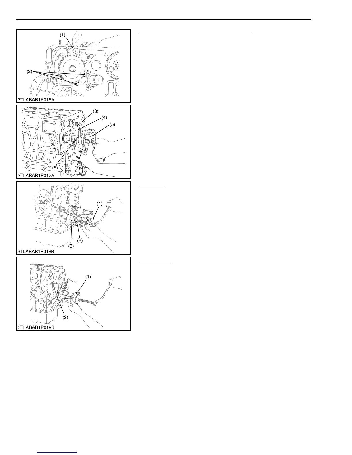 2. Draw out the oil pump drive gear (2) with gear puller (1).