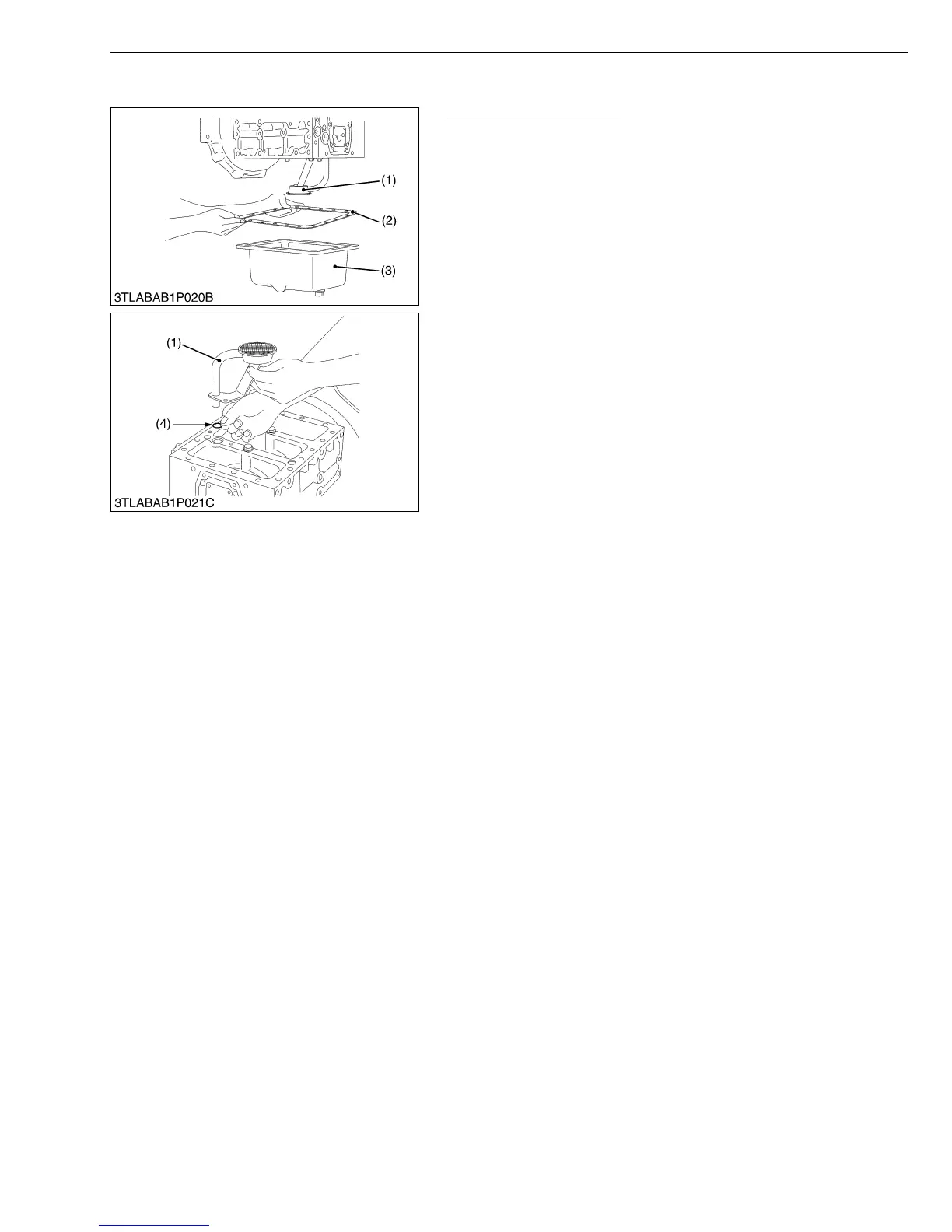 2. Remove the oil pan (3) by lightly tapping the rim of the pan with