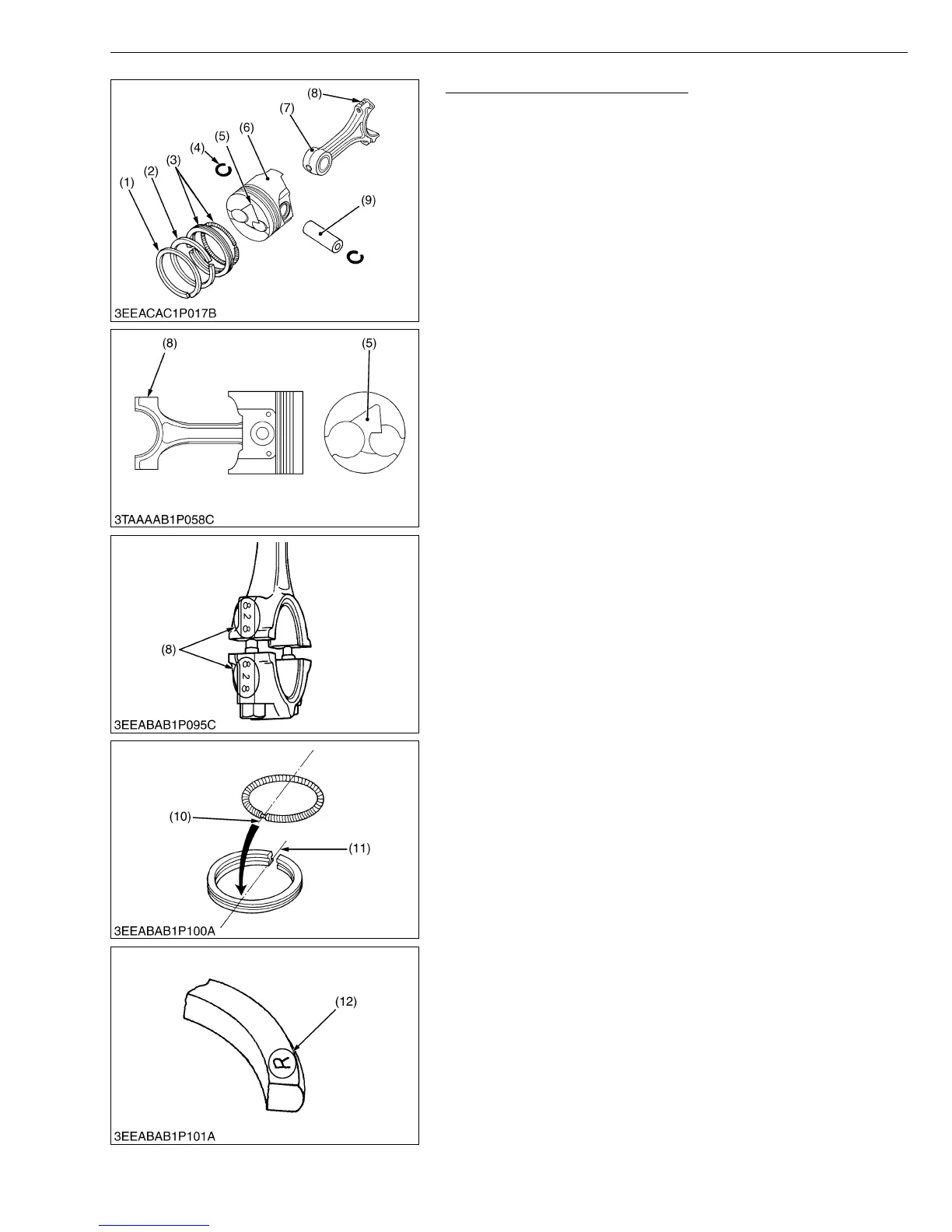manufacturer’s mark (12) near the gap faces the top of the piston