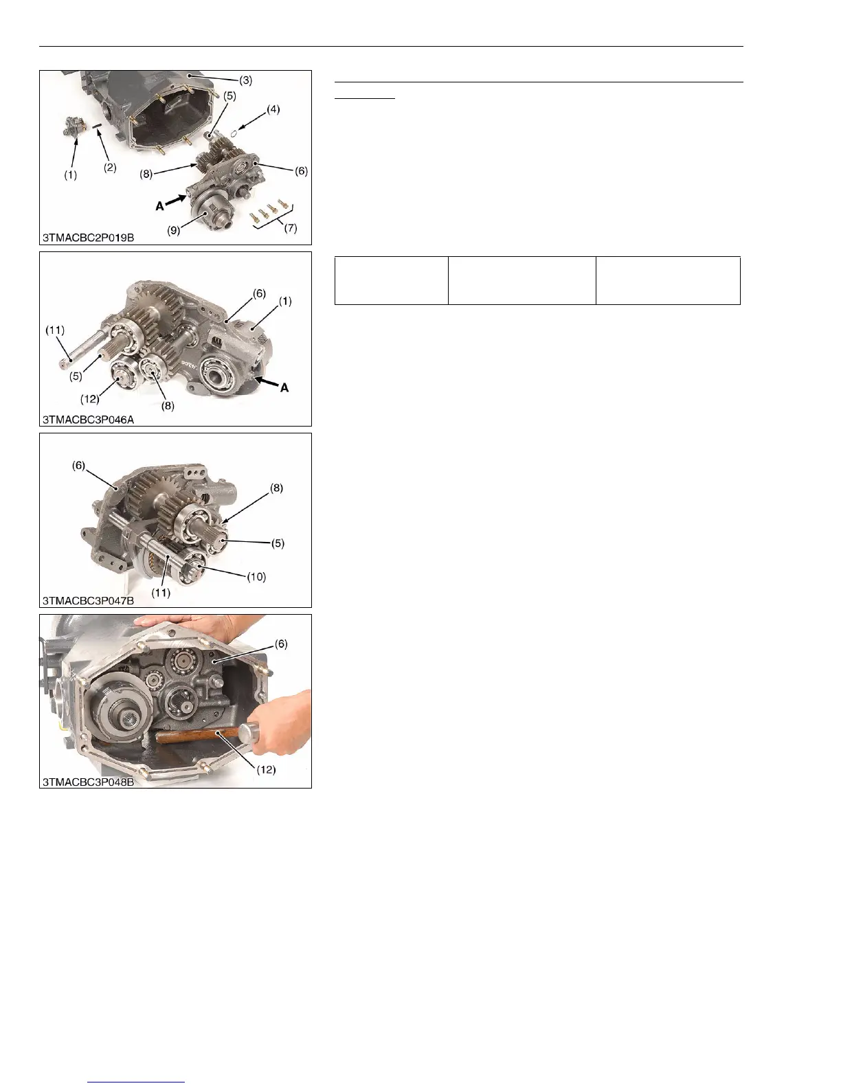 2. Assemble the shafts (5), (8), (10) to the PTO clutch bearing