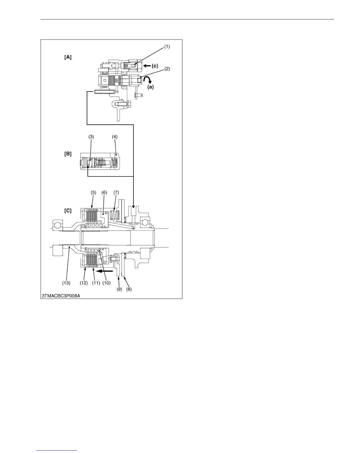 entering the clutch pack pushes the piston (6) to engage