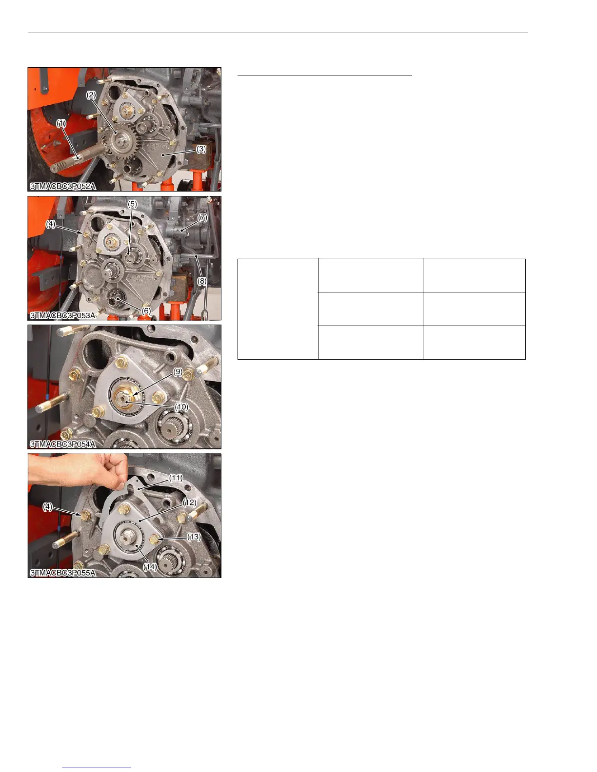 1. Remove the 11T PTO gear shaft (1) and 30T gear (2).