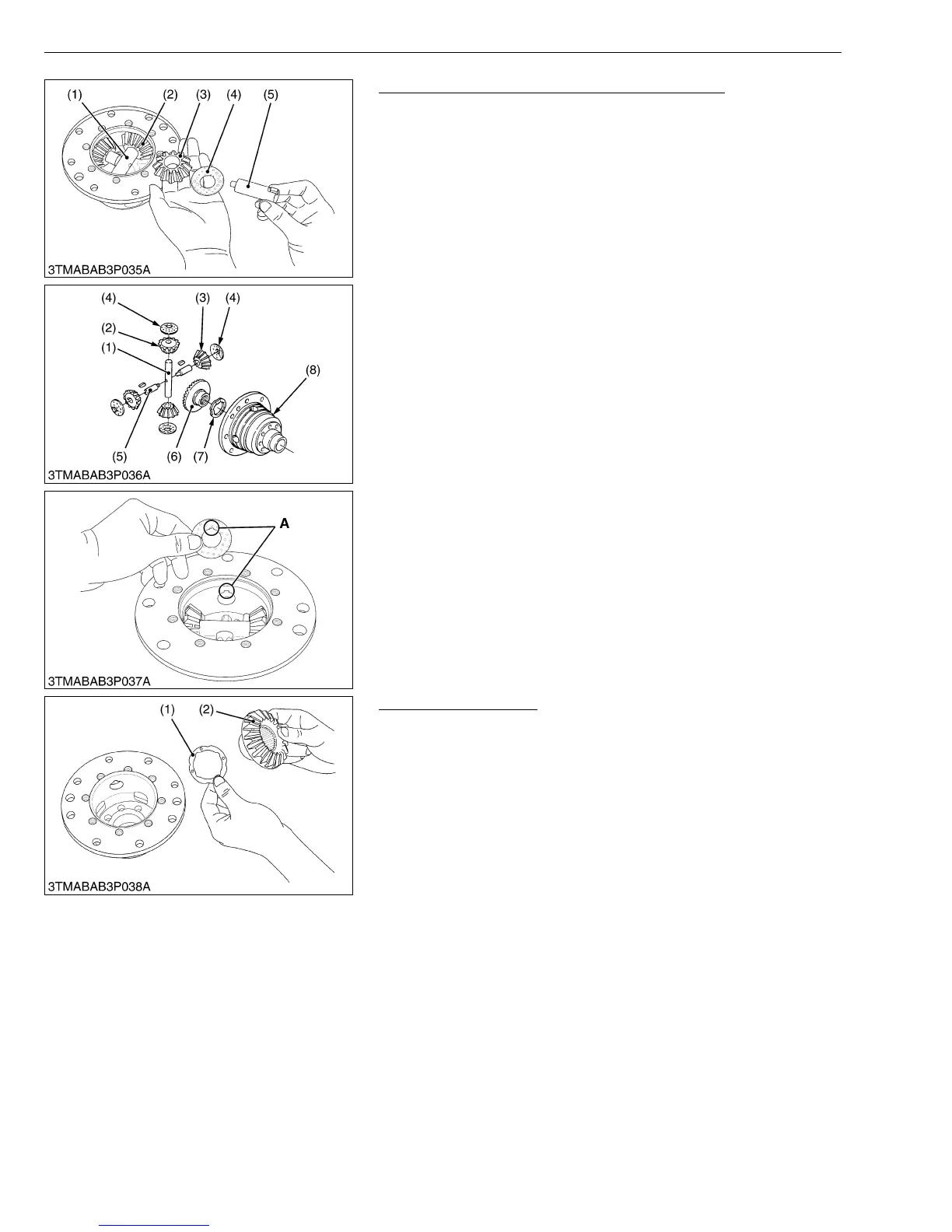 • Check the differential pinions (2) and (3), and pinion shaft (1) and