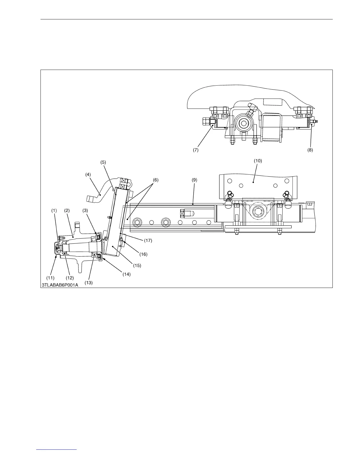 The front axle of the 2WD type is constructed as shown above. The shape of the front axle is relatively simple, and