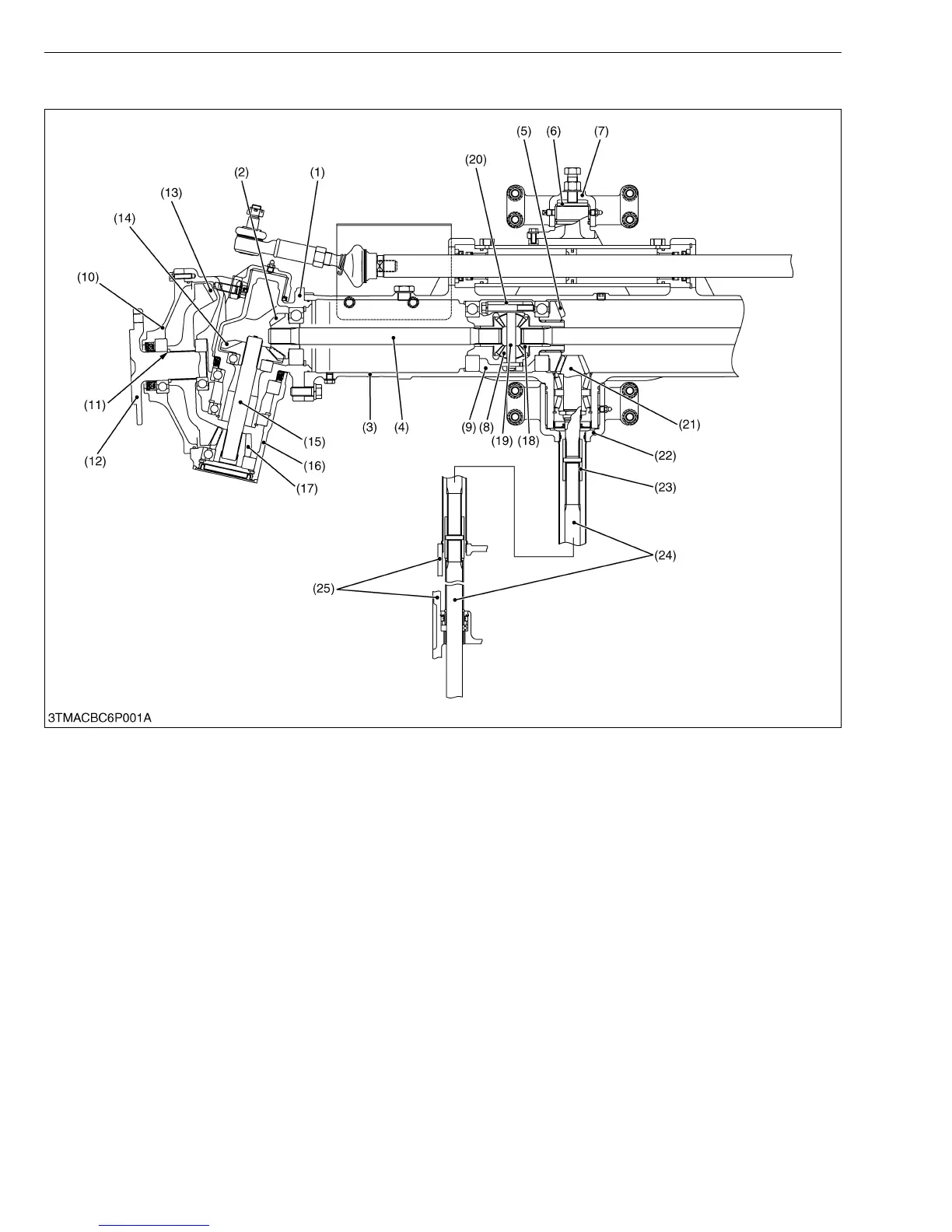 The power through the differential is transmitted to the differential yoke shaft (4), and to the bevel gear shaft (15)