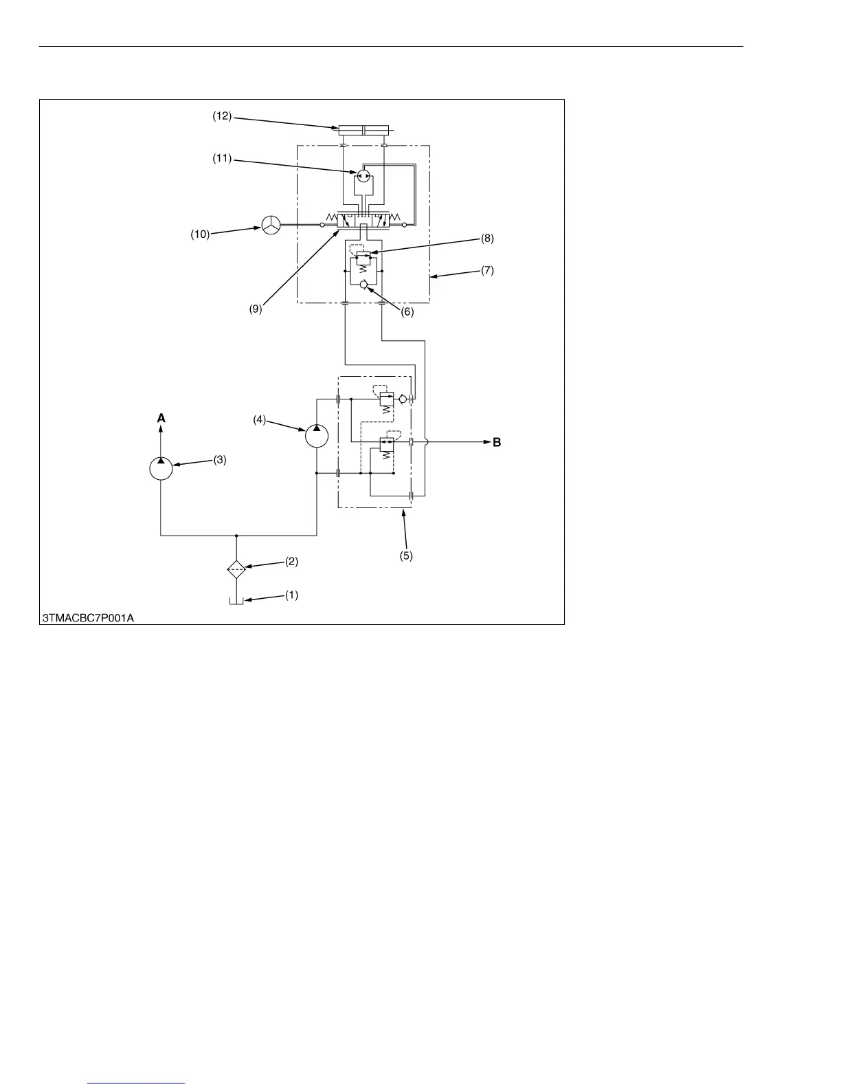 the steering cylinder (12). Thus the machine can be steered manually. Under this condition, check valve (6) opens,