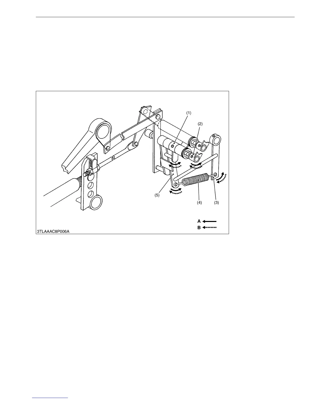 1. When the position control lever (2) is moved to the DOWN side, the position control link (1) is also rotated.