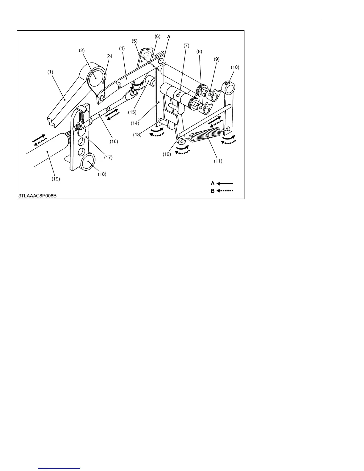 2. At the same time, the arm 2 (10), arm 1 (12), and draft control link 1 (13) are returned by the return spring (11).