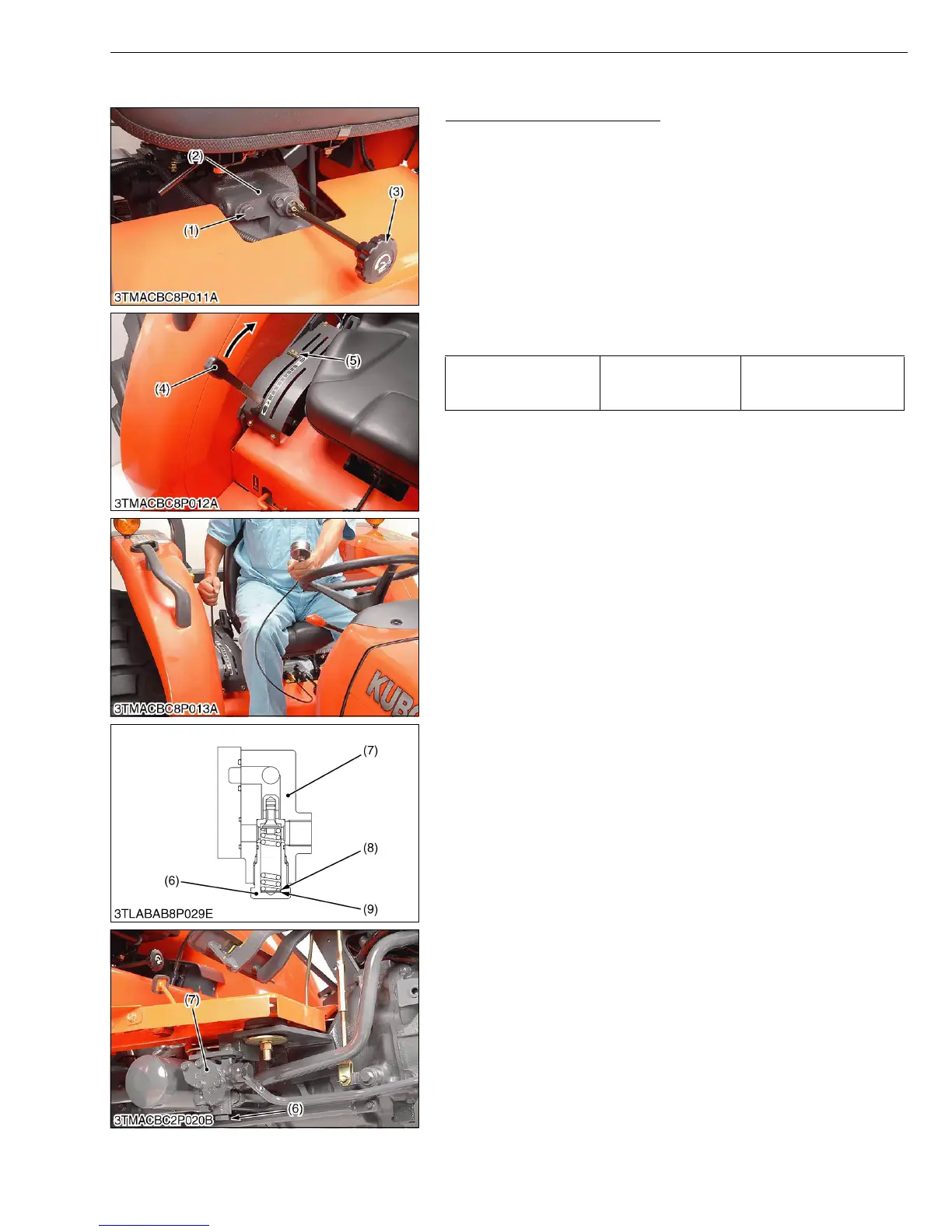 relief plug valve (6) of front hydraulic block (7) and adjust with the