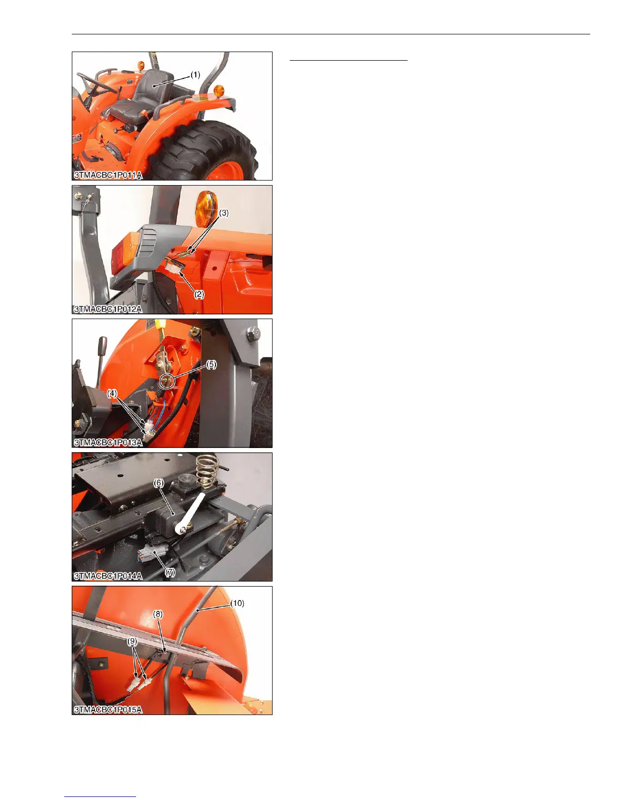 3. Disconnect the 2P connectors (4) from the PTO lever neutral