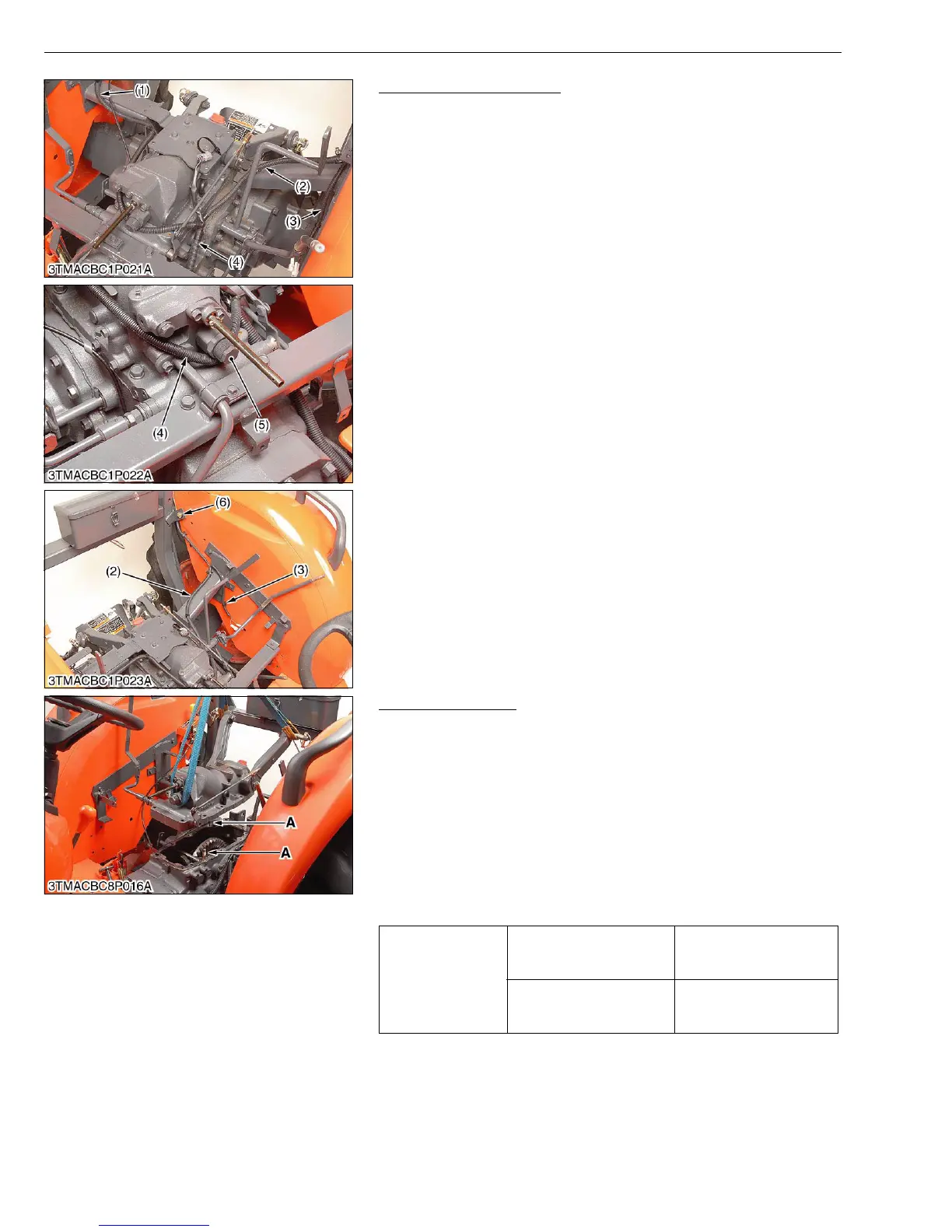 • Reassemble the hydraulic cylinder assembly to the tractor,