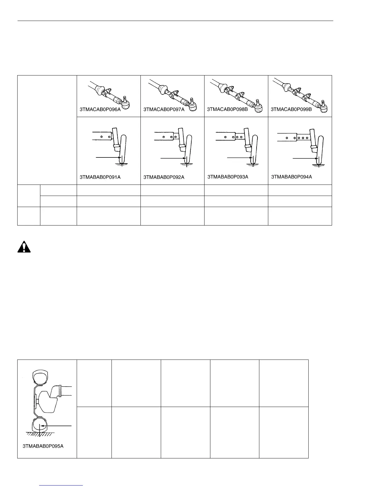 Toe-in: All models 2 to 8 mm (0.08 to 0.31 in.)