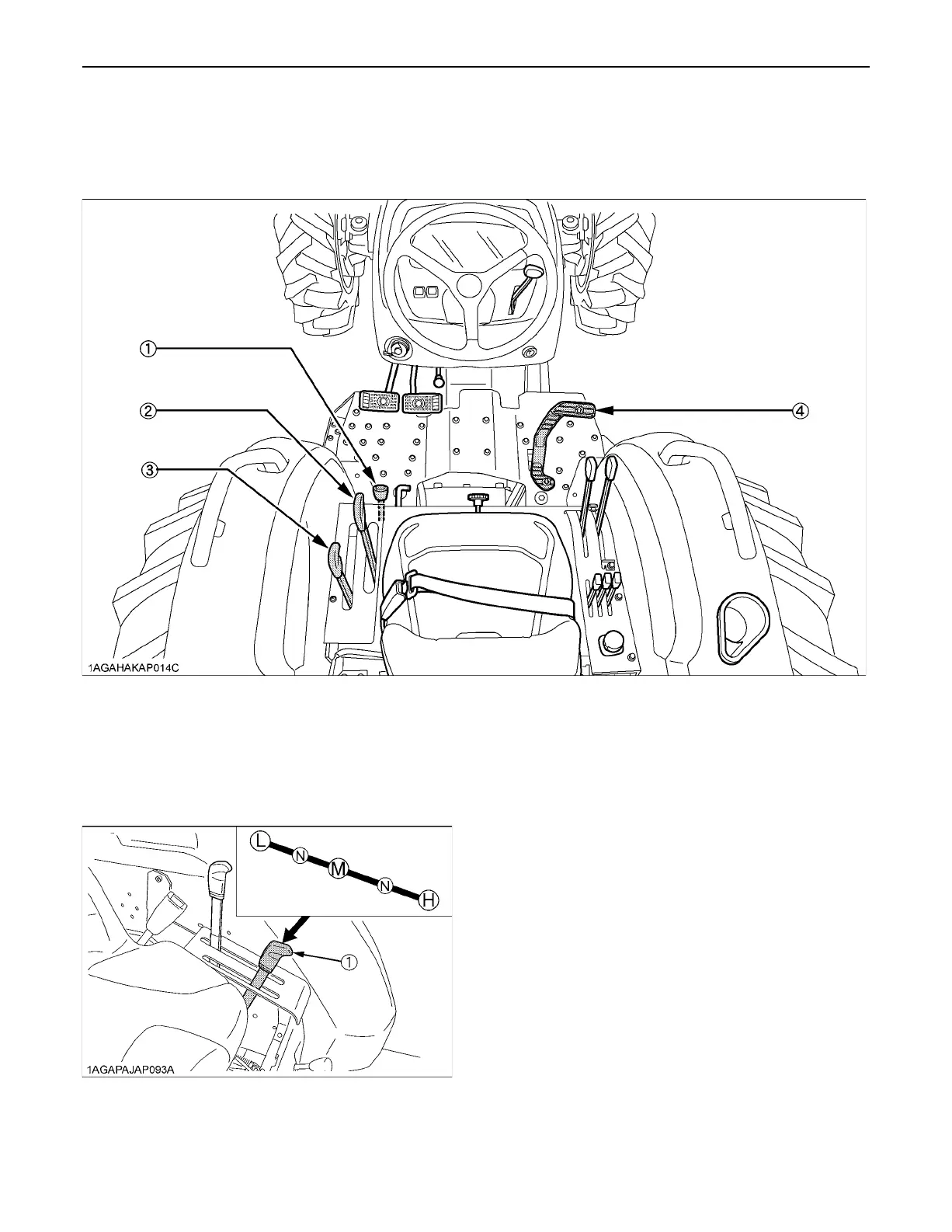 (1) Range gear shift lever (L-M-H) (H) "HIGH"