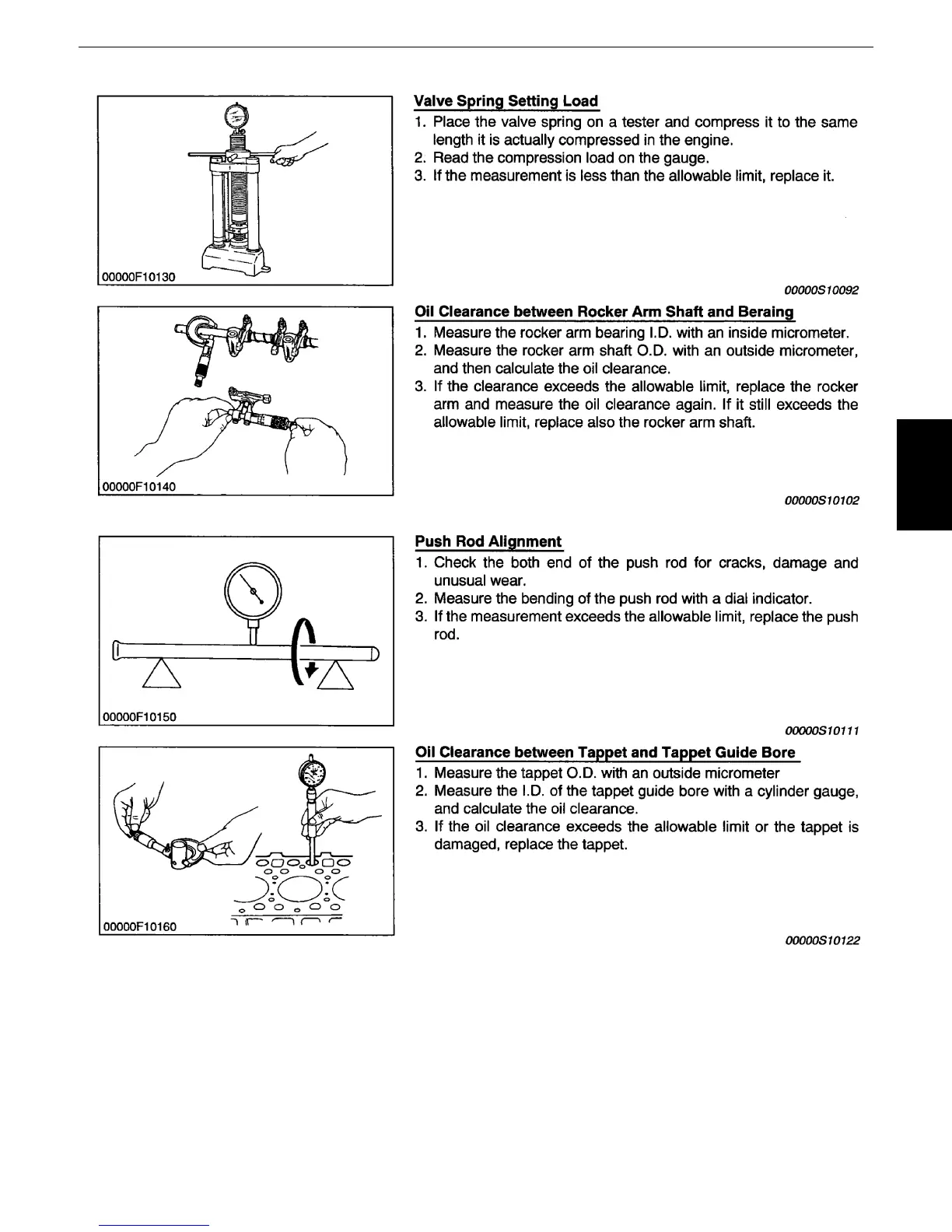 Kubota U25-3 - Oil Clearance between Rocker Arm Shaft and Bearing; Oil Clearance between Tappet and Tappet Guide Bore; Push Rod Alignment; Valve Spring Setting Load